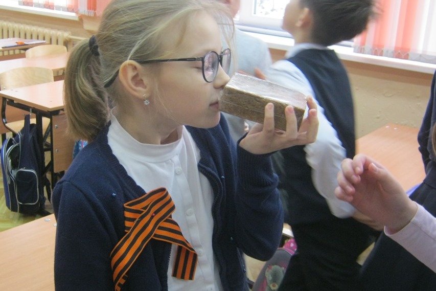 Хлеб.… Какое простое, повседневное слово. Оно также естественно для нас, как слова мама, солнце, вода. Чтобы понять истинную цену хлеба, говорили о военном хлебе, о хлебе блокадного Ленинграда, потому что у войны свой хлеб – небогатый, отмеренный хлебной карточкой. Детям наглядно показали хлеб весом 125 грамм – норму блокадного хлеба иждивенцам и детям до 12 лет, дали подержать его в руках, рассказали, из чего пекли хлеб в военное время.