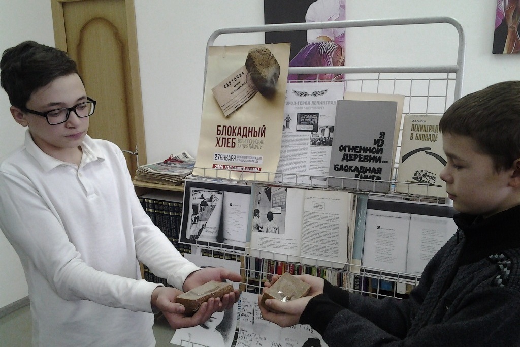 Библиотека №16 присоединилась к акции «Блокадный хлеб», пригласив на тематический вечер старшеклассников школы №43. Рассказывая ребятам о блокаде Ленинграда, говорили о том, что для живущих в городе 872 дня блокады не просто цифра — каждый из этих дней оставлял тяжелый след в жизни каждого блокадника. Ленинград терял своих жителей, в городе погибло от 692 000 до 1 500 000 человек – и почти все из них умерли от голода. Единственной надеждой на завтрашний день был паек. Буханка хлеба постепенно превратилась в 125-ти граммовый кусочек – именно такая минимальная норма выдачи хлеба была установлена для жителей блокадного Ленинграда.