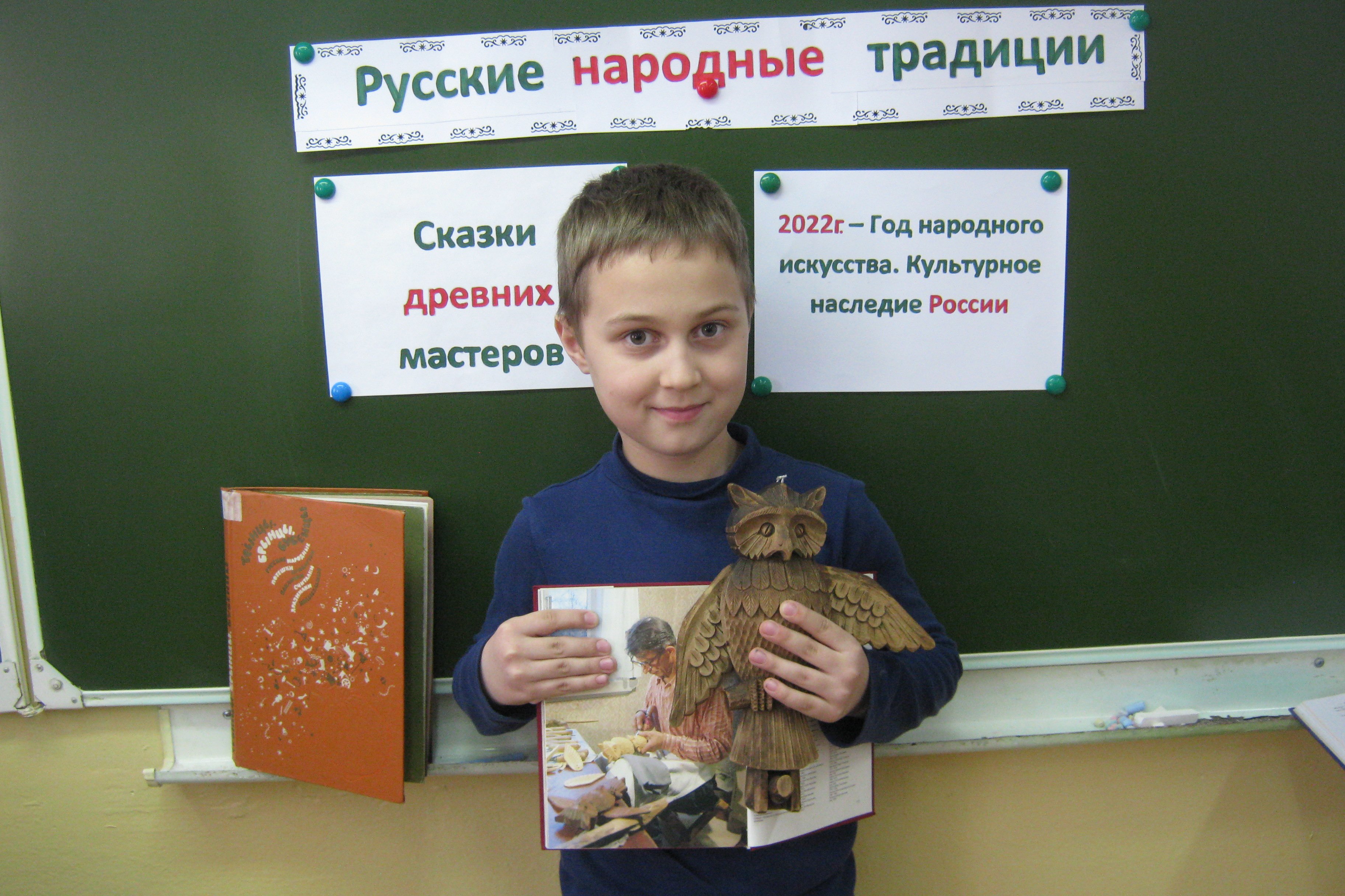 Еще второклассники познакомились с народными умельцами, создающими сказочных персонажей для детских забав. В основе этих поделок, тоже сказка, сегодня игрушка конца 19 века – совушка, неясыть. Самая загадочная ночная птица, предвестник ночной охоты Бабы Яги. По преданью Яга мчится в ступе, заметая след помелом в тридевятые земли живых людей. Но солнышко чуть блеснет, и ведьма возвращается в лес, а сова все-таки в живой лес попасть может. Только и ей не дано днем жить среди людей. А игрушкой играть можно, отпугивая от детских кроваток, страшные сны.