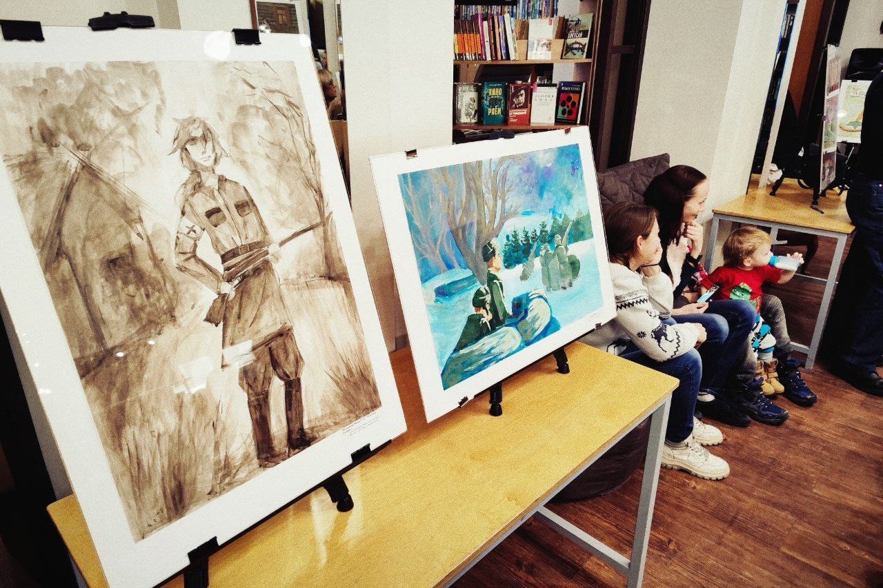 Больше 15 глубоких художественных работ разместились в библиотеке. В рамках экспозиции представлены работы учащихся ДХШ № 1 г. Владивостока, отражающие образы славных воинов и страницы истории нашей страны.