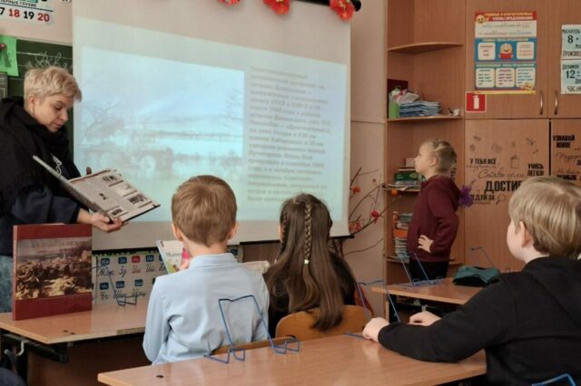 В рамках библиотечного проекта «Краеведческая мастерская» библиотека БУК (ул. Светланская, 55) провела для учеников 4 класса СОШ №9 час памяти «Защитники земли Русской. библиотекари построили встречу как путешествие во времени — от начала XX века до наших дней. Разговор начали с Русско-японской войны 1904–1905 годов: вспомнили моряков-тихоокеанцев, оборонявших Порт-Артур, и экипаж легендарного крейсера «Варяг». Затем перенеслись в годы Гражданской войны и интервенции на Дальнем Востоке. Ребятам рассказали о приморских партизанах, которые сражались в сопках с белогвардейцами и иностранными войсками, отстаивая родную землю. Напомнили ребятам о защите дальневосточных границ от агрессивных устремлений милитаристской Японии в 1933–1938 годах. Особое внимание уделили событиям на острове Даманский в 1969 году — подвигу приморских пограничников, защищавших рубежи Родины. Завершили рассказ нашими современниками — участниками специальной военной операции.