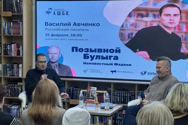 21 февраля в рамках проекта «Литературная школа библиотек Владивостока» состоялась лекция «Позывной Булыга. Неизвестный Фадеев». Лектором стал известный российский писатель, журналист и автор книги «Фадеев» — Василий Авченко. Лекция прошла в формате открытого диалога, который поддерживал директор Владивостокской централизованной библиотечной системы Сергей Соловьев.