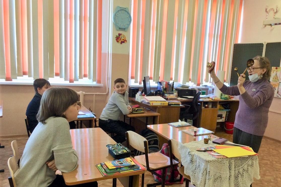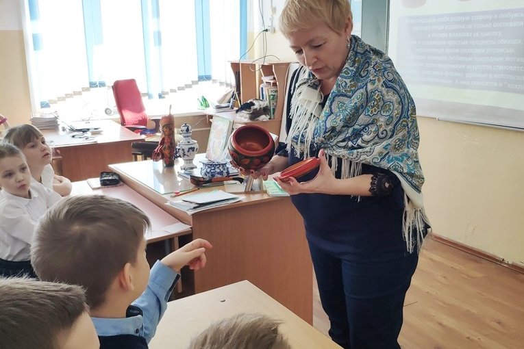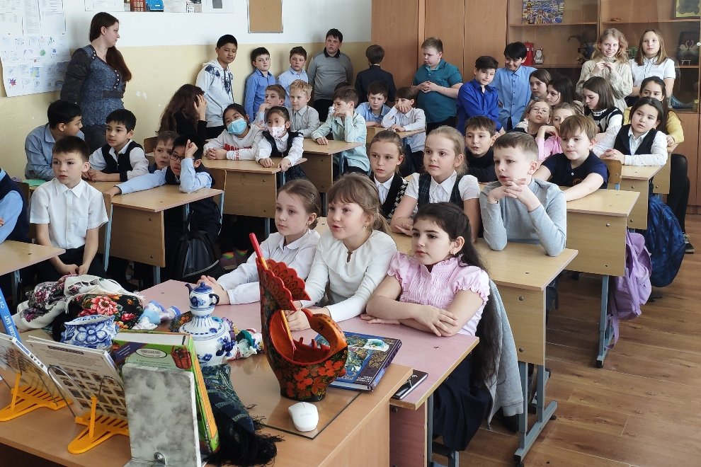 Библиотека № 20 продолжает цикл мероприятий по программе «Народный калейдоскоп», посвященных Году народного искусства и нематериального культурного наследия. Второклассники и пятиклассники из школы № 7 погрузились в историю России. Ребята совершили путешествие во времени и с помощью красочной, познавательной презентации попали в старинную русскую избу. Школьники познакомились с устройством быта, с предметами кухонной утвари, с российскими семейными традициями. В ходе беседы ребята узнали историю народных промыслов России, смогли рассмотреть вблизи обрядовых куколок – столбушек, павловопосадские платки и изделия народного творчества из городов Хохлома и Гжель. В конце беседы была проведена для ребят викторина на закрепление услышанной информации. Ребята активно отвечали на вопросы, проявили заинтересованность данной темой.