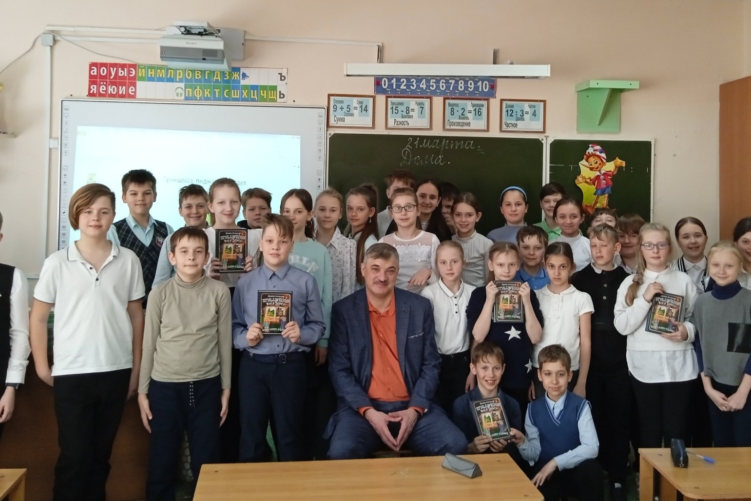 21 марта библиотека № 13 организовала для учащихся 4 «Б» класса СОШ № 61 встречу с писателем-сказочником, Даниилом Алексеевым.