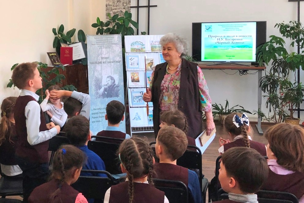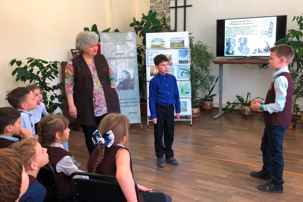 19 апреля в библиотеке им. И. Басаргина прошёл краеведческий урок для учащихся 2 «А» класса школы №57. Разговор начался с обсуждения произведений о необыкновенных собаках, вспомнили Каштанку, Мухтара, верного Руслана, Белого Бима и других. Перечислили, что их объединяет, что необычного заметили в них, рассказали о своих питомцах. Список интересных собак продолжил И. Басаргин, рассказав нам о Чёрном Дьяволе – собаке-легенде, которая умела «любить так, что о ней помнят до сих пор», умела мстить за обиды, обладала «дьявольской способностью выживать там, где десятки других погибли бы»