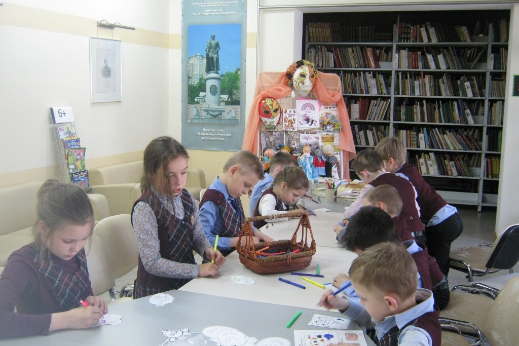 Первоклассники из группы продленного дня МБОУ СОШ № 62 дважды в неделю посещают библиотеку им. Н.Н. Муравьева-Амурского. Юные читатели уже освоились в библиотеке и чувствуют себя как дома. Для школьников проводятся различные познавательные и развлекательные мероприятия, но ребята всегда рады традиционному чтению вслух и возможности проявить себя, будь то творчество или обсуждение прочитанного.