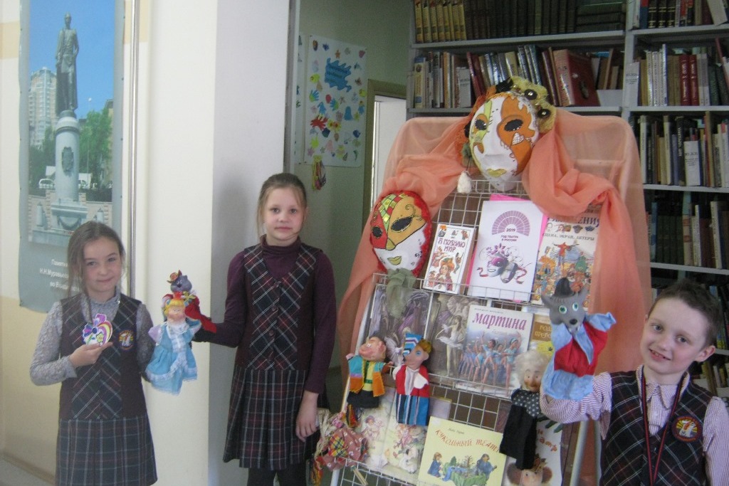 На сей раз, громкие чтения носили «театральную окраску» и вызвали небывалое оживление в рядах слушателей. Ребята с удовольствием прослушали рассказ Майкла Бонда «Паддингтон в театре» о происшествии, случившемся с незадачливым медвежонком в театре. Интерес вызвала малоизвестная сказка Ганса-Христиана Андерсена «В детской», отрывок из сказки Николая Носова «Незнайка в Солнечном городе». Наличие перчаточных кукол на книжной выставке обещало юным читателям некий сюрприз, которого они с нетерпением ждали. Каждому ребенку представилась возможность стать самым настоящим актером-кукольником и продекламировать короткое стихотворение от лица своего персонажа. В завершении встречи ребята разукрасили по своему вкусу театральную маску, которая останется у них на память.