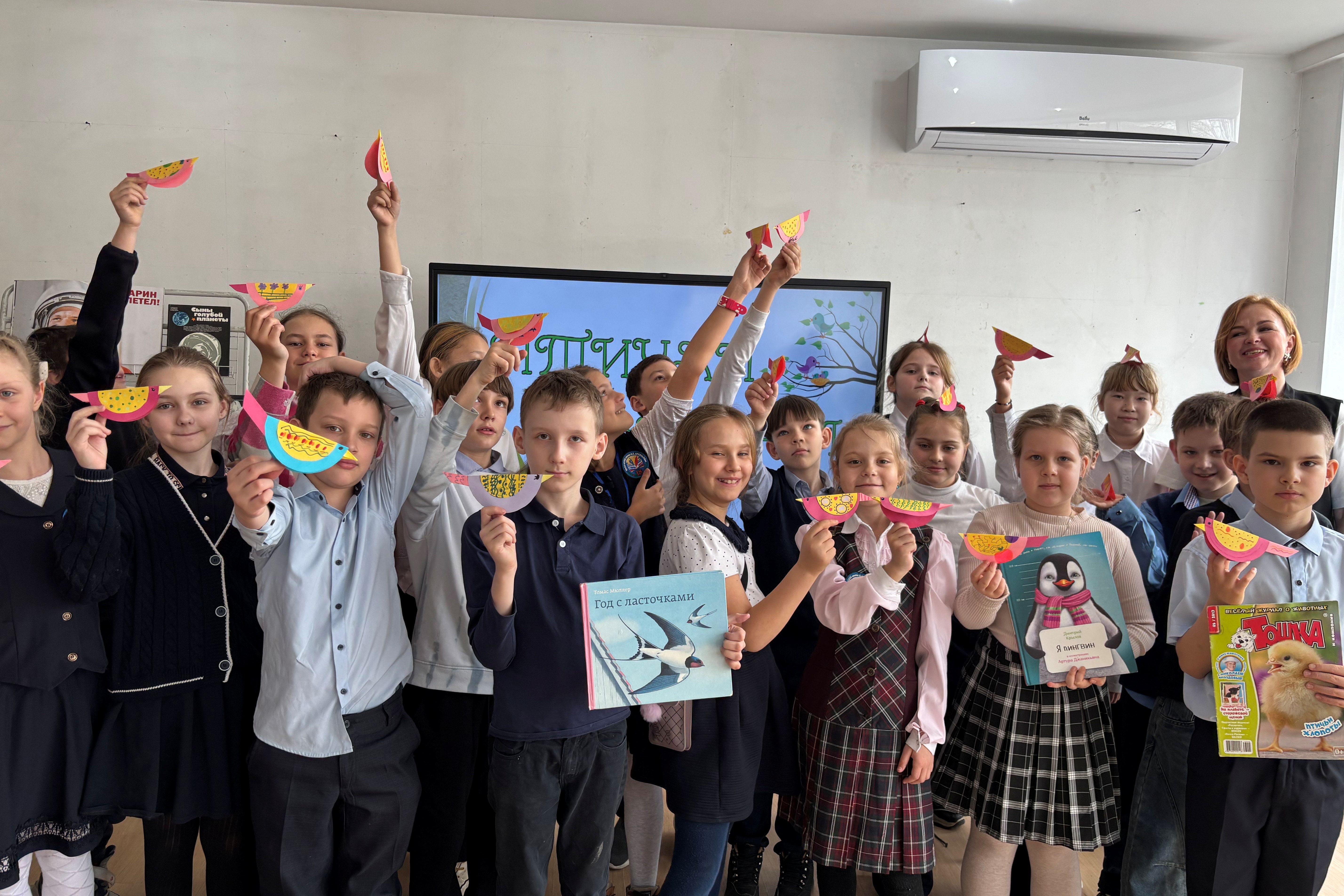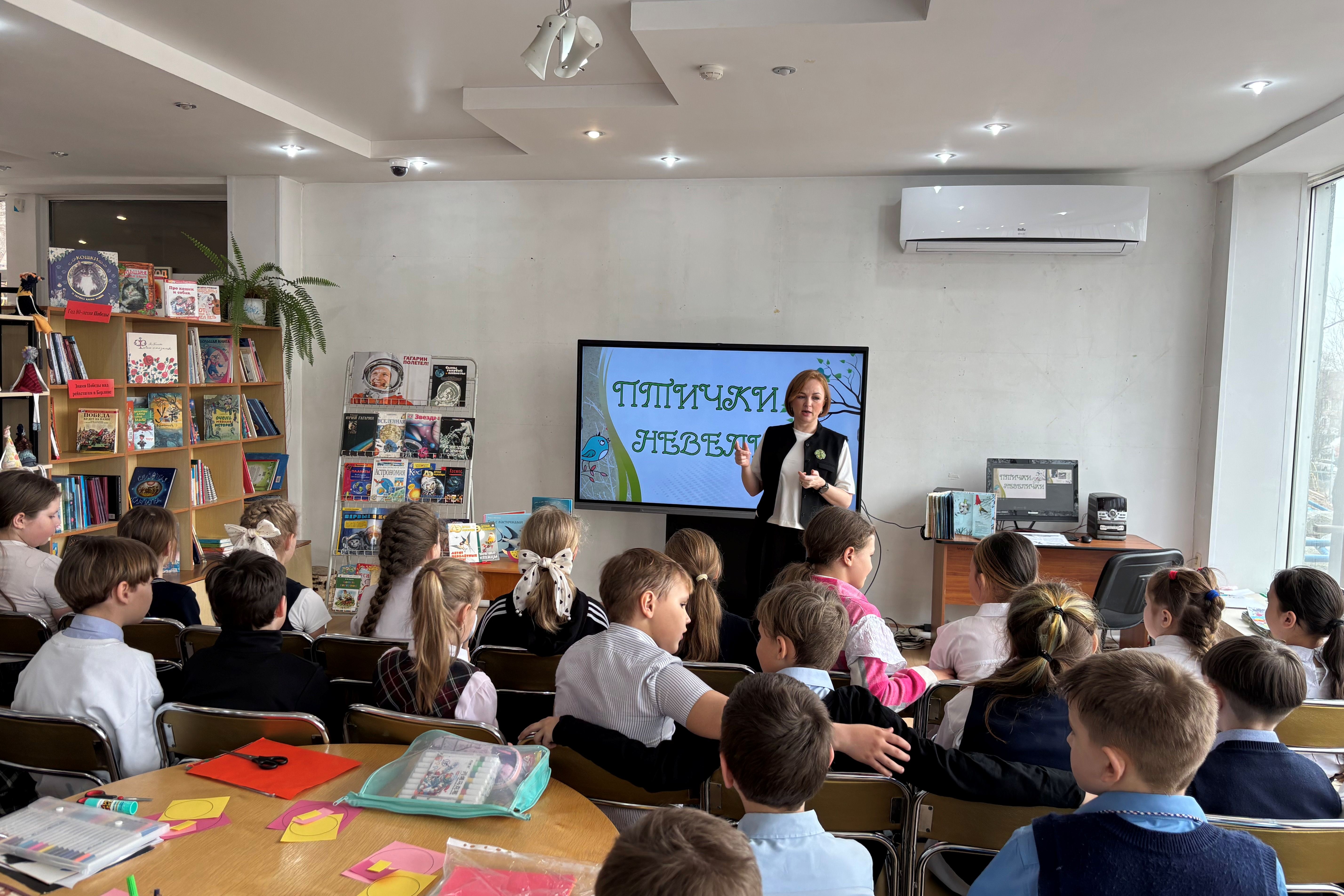 В апреле библиотека №3 (ул. Хабаровская, 19) организовала для учащихся начальных классов СОШ №63 и СОШ №18 познавательно-игровые часы «Птички-невелички», приуроченные к Международному дню птиц. В ходе мероприятия дети познакомились с самыми маленькими представителями птичьего мира, узнали, где они обитают, чем питаются, как выглядят, послушали голоса птиц, ведь без их звонких трелей нельзя вообразить себе нашу планету. На протяжении встречи, детей волновал вопрос: есть ли птичка, которая меньше других птичек-невеличек? Некоторые из ребят ответ уже знали, а для большинства это было открытием. Колибри-пчелка – самое крошечное создание природы, даже бабочки крупнее! Весит колибри почти 2 грамма – как 50-ти копеечная монетка. Дети с большим вниманием слушали интересные факты об уникальных птичках, чей вес всего несколько граммов. А затем еще с большим азартом играли в игру, где по описанию, черно-белому профилю или загадке, должны были назвать зашифрованную птичку. В завершении занятия, ребята смастерили из бумаги забавную птичку-невеличку.