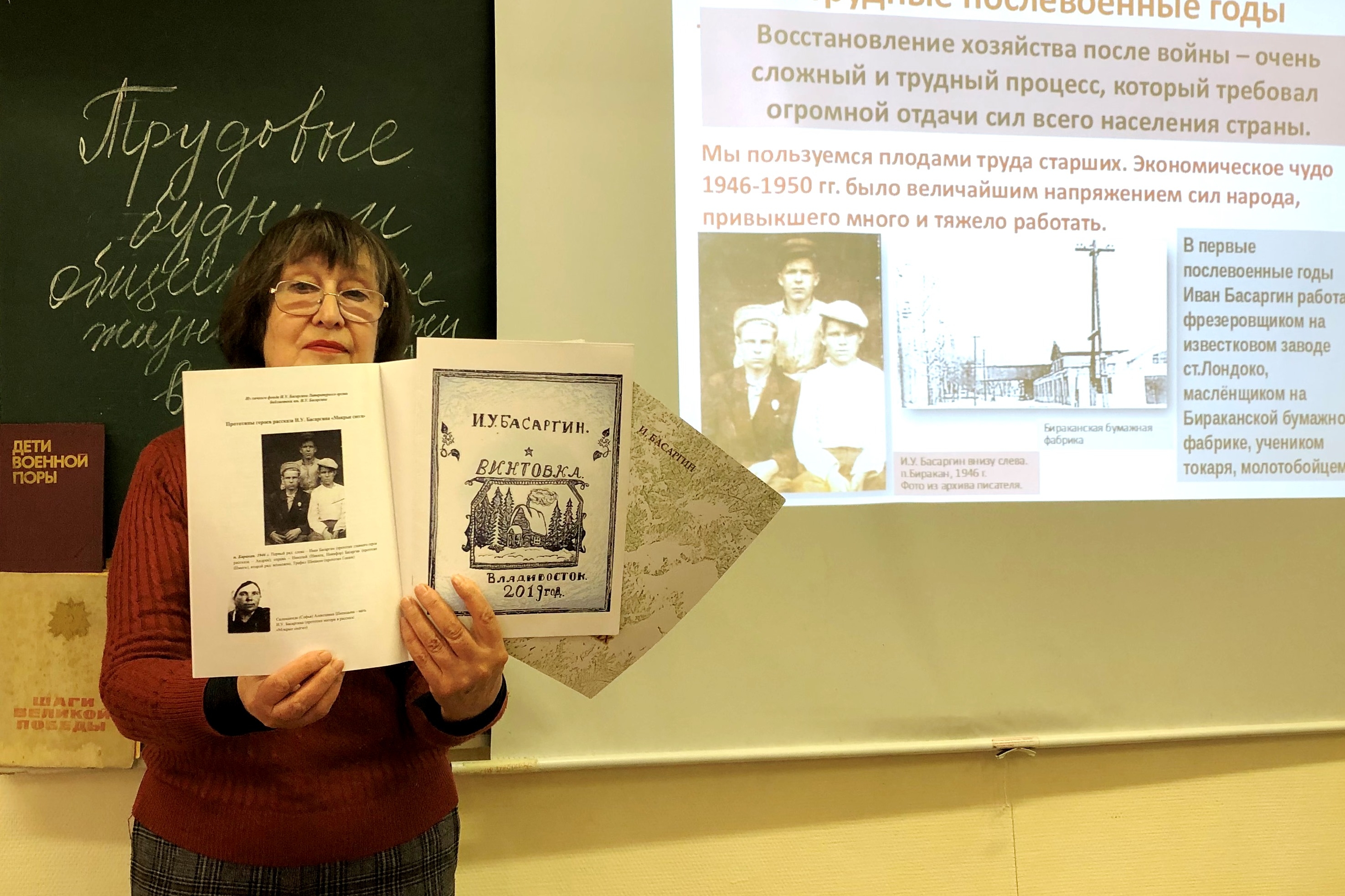 18 мая в рамках программы «Басаргинская строка» состоялось занятие с учащимися 9 «А» класса МБОУ «СОШ № 64» «Трудовые будни и общественная жизнь молодежи в военные и послевоенные годы». Наряду с устными выступлениями были использованы дополняющие и обогащающие их наглядные и художественные иллюстрации, мультимедийная презентация, подборка книг, подарочный иллюстрированный альбом к 75-летию Победы и др.