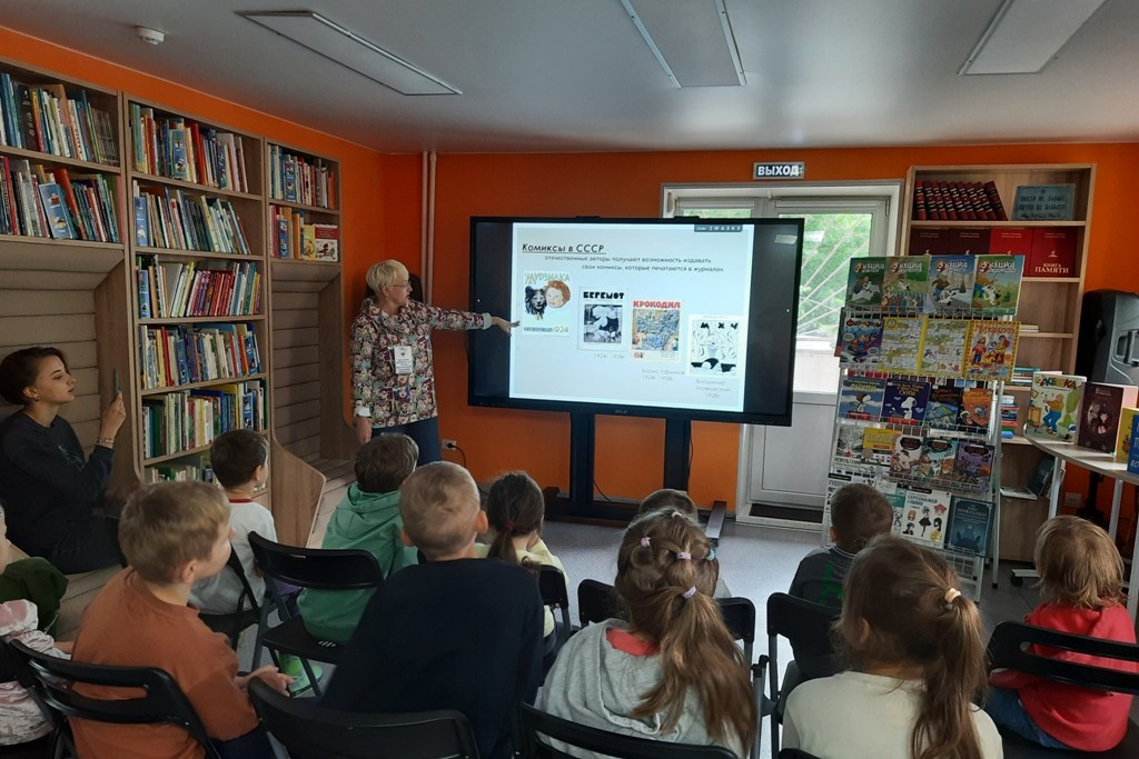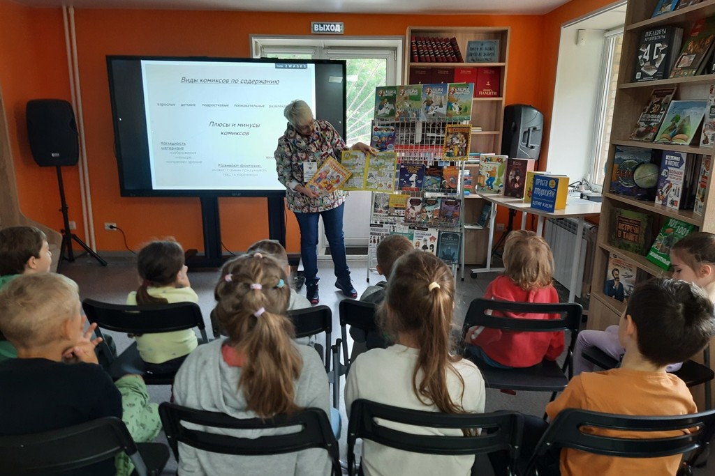 Нередко случаются дни в модернизированной библиотеке № 20 на Заре, которые насыщены и наполнены различными событиями. Таким стал, например, день 25 июня. Самыми первыми посетителями в этот день стали ребята и педагоги из АНОО «Центр счастливой семьи «Маленький Волшебник». По просьбе педагогов Елена Евгеньевна, заведующий библиотекой, подготовила познавательное мероприятие «Комиксы и не только».