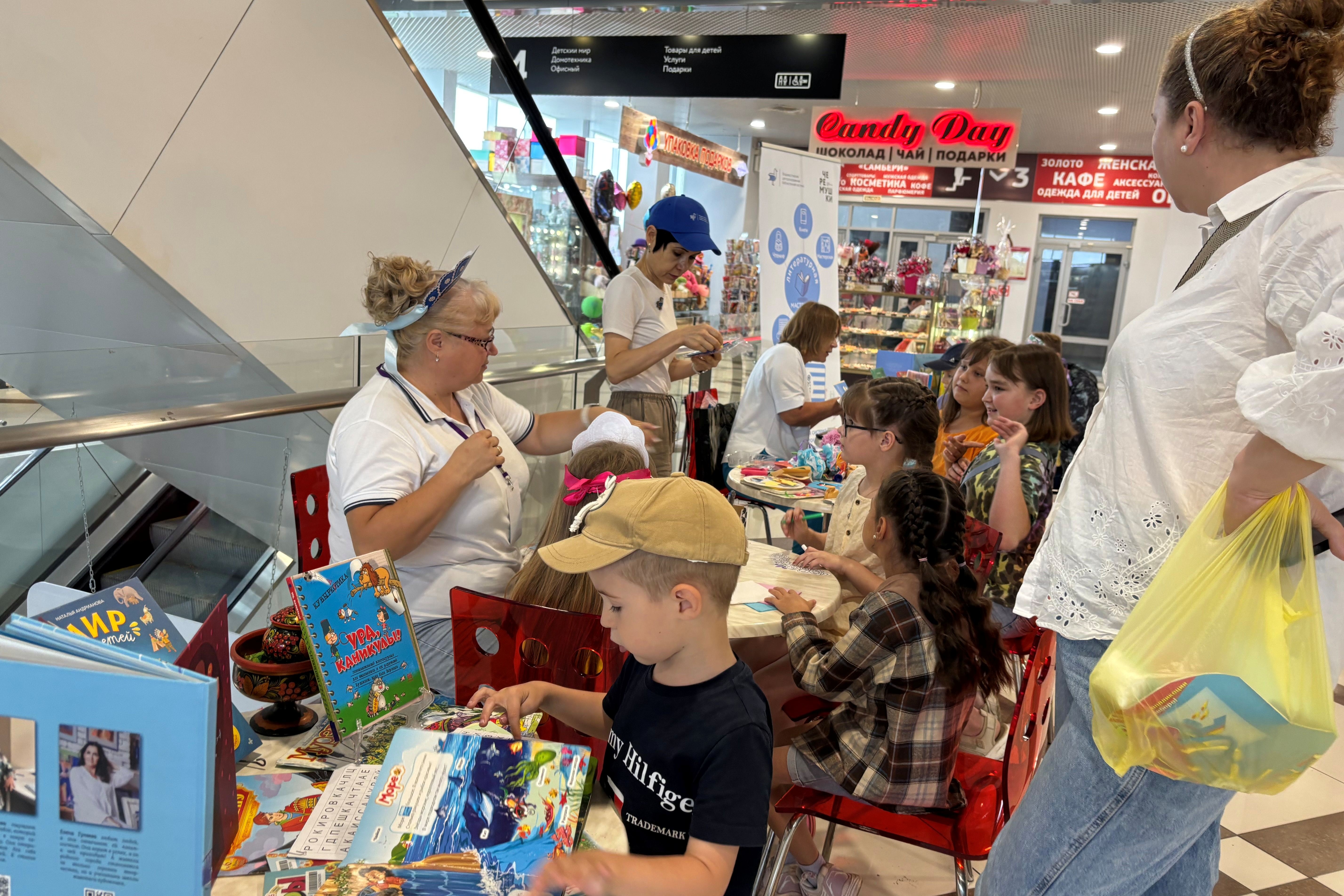 19 июля всех посетителей в торговом центре «Черемушки» на Открытой библиотечной площадке МБУК «ВЦБС» ждали летние забавы и развлечения, ведь лето – самая прекрасная пора для веселых игр, конкурсов, интеллектуальных развлечений и активного творчества. Этим летом библиотечные площадки в торговых центрах превратились в самые настоящие центры активности, где дети с удовольствием участвуют в играх и викторинах, разгадывают кроссворды и филворды, слушают интересные книжные истории.