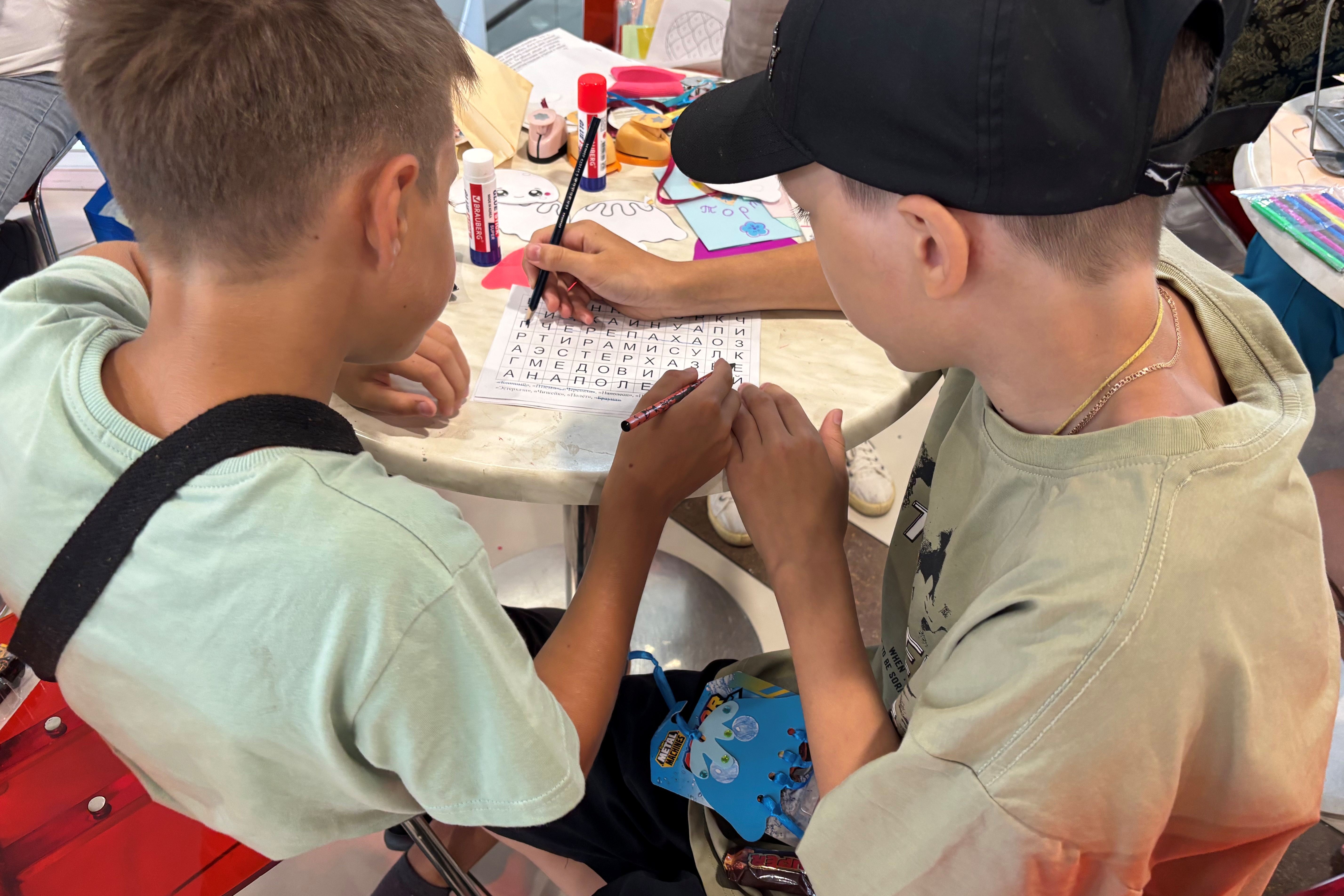 Особый интерес у детей, как всегда, вызвали тематические филворды (словесные головоломки), где нужно было найти спрятанные слова по темам. В этот раз основными темами были наступающие Международные дни торта и шахмат. Как выяснилось, на площадке нашлось немало знатоков шахмат, поэтому такие филворды они легко отгадали. Ребята работали в команде, помогая друг другу.