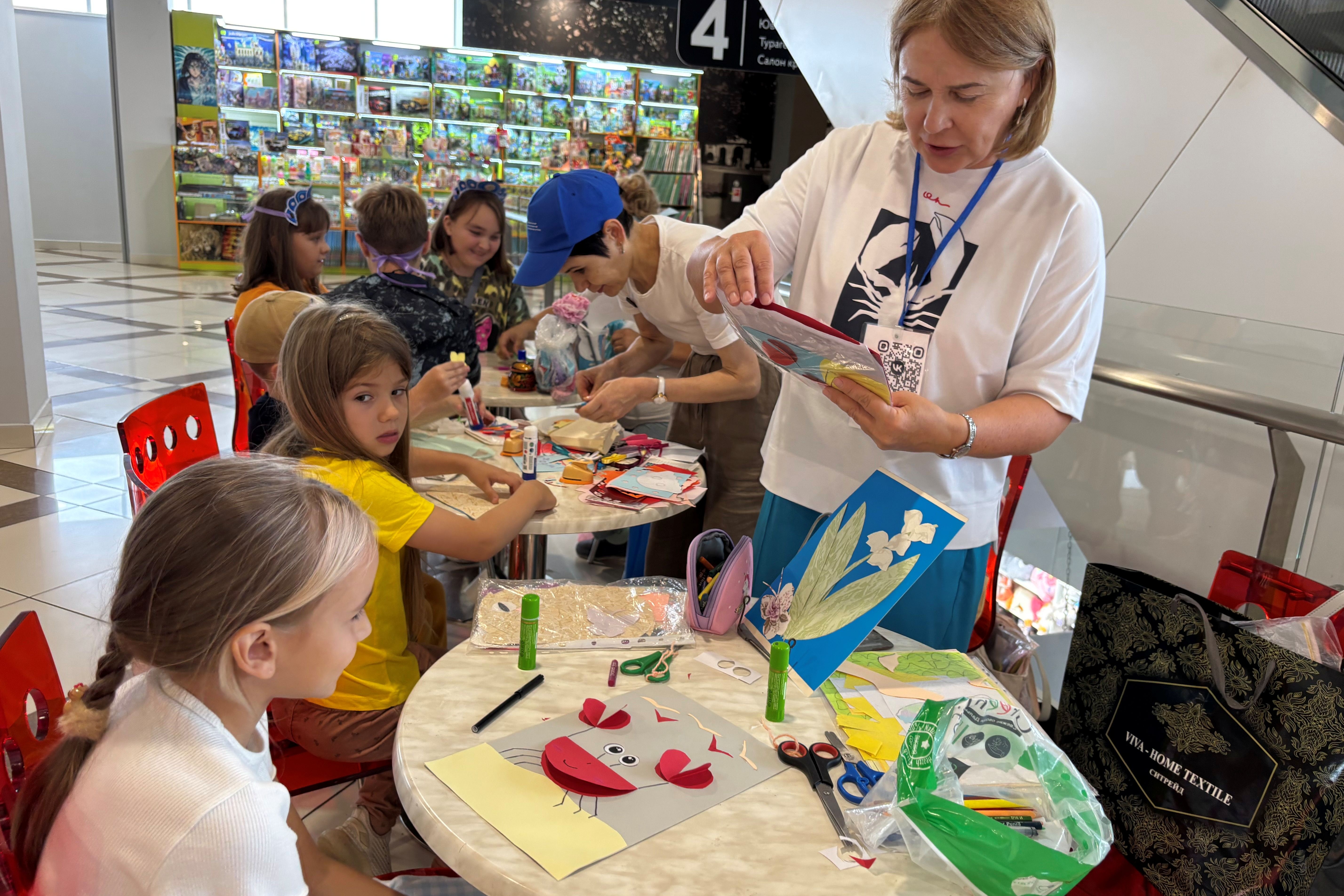 В этот великолепный летний день на площадке прошли незабываемые мастер-классы для детей, полные игр, творчества и, конечно же, самых разнообразных поделок. Юные посетители увлеченно занимались творчеством. Им хотелось сделать все, что предлагали библиотечные работники: мастерили морских обитателей, ведь море привлекает всех, цветочные натюрморты, веселых, поздравительные открытки с красивыми тортиками, различных зверюшек. Девочки с восторгом примерили на себя сделанные своими руками нарядные кокошники. Большой фурор произвели изготовленные своими руками нарядные цветы из салфеток разных цветов.