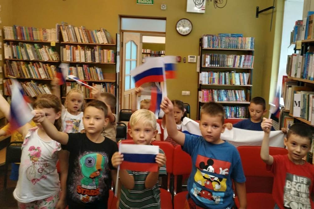 О государственных символах нашей Родины, о многонациональной державе, которая величественно простирается с запада на восток, говорили накануне праздника сотрудники библиотеки № 4 с юными воспитанниками детского сада № 154. Дошкольники посмотрели яркую презентацию «Моя страна Россия» и увидели на карте, какая же большая наша страна, познакомились с её народами, узнали, какие государства живут по соседству с нами и какими морями омывается. Вместе сделали вывод: всем народам надо жить в мире и согласии, гордится своим Отечеством.