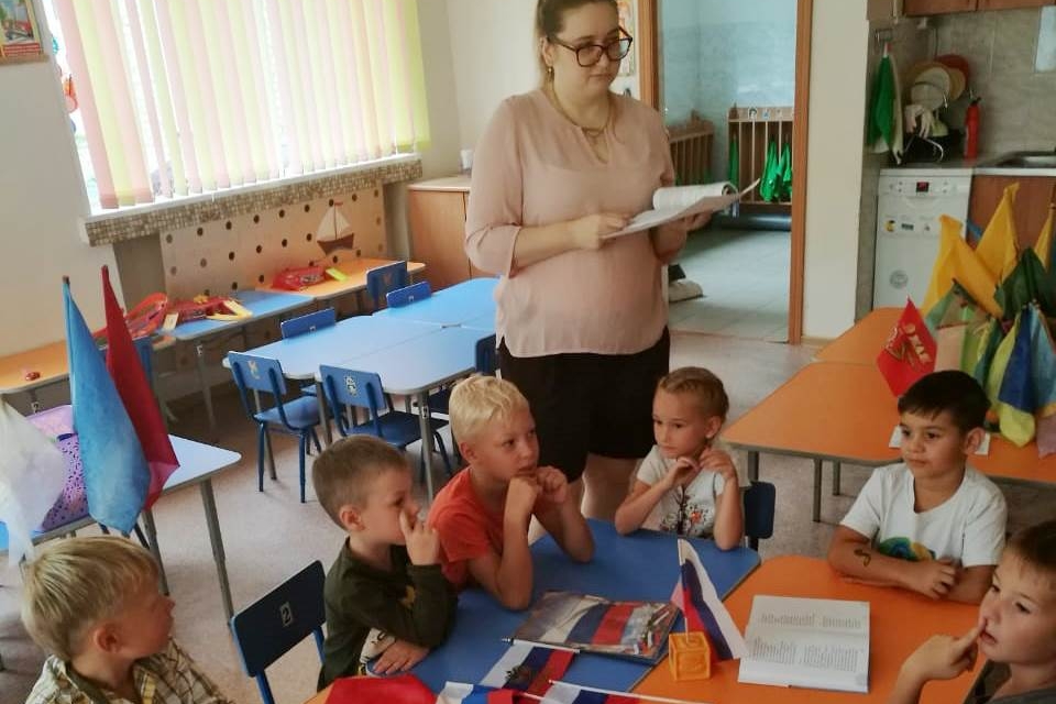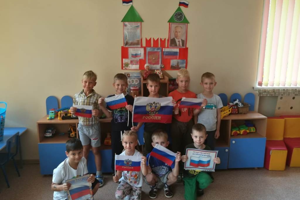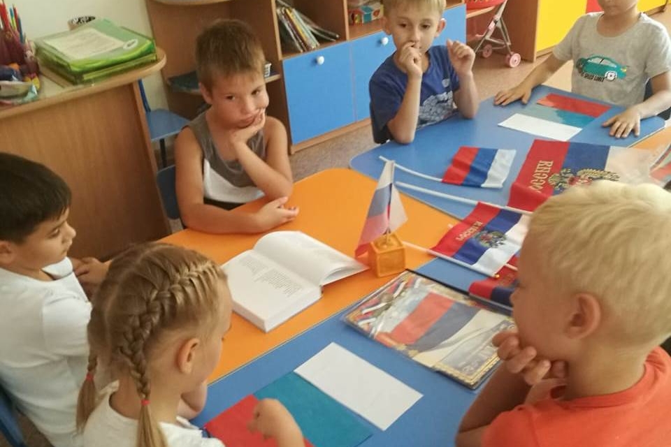 Ребята заранее выучили и рассказали наизусть красивые стихи о цветах нашего флага, затем прослушали музыкальную композицию «Это ты, — Родина моя», посмотрели, как происходит подъём флага под гимн РФ, отгадали загадки о неофициальных символах нашей родины (знакомые с детства матрёшки, белые ромашки и берёзы, золотые купола церквей и др. всенародно любимые символы).