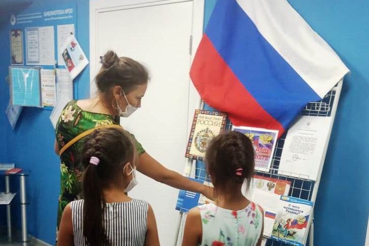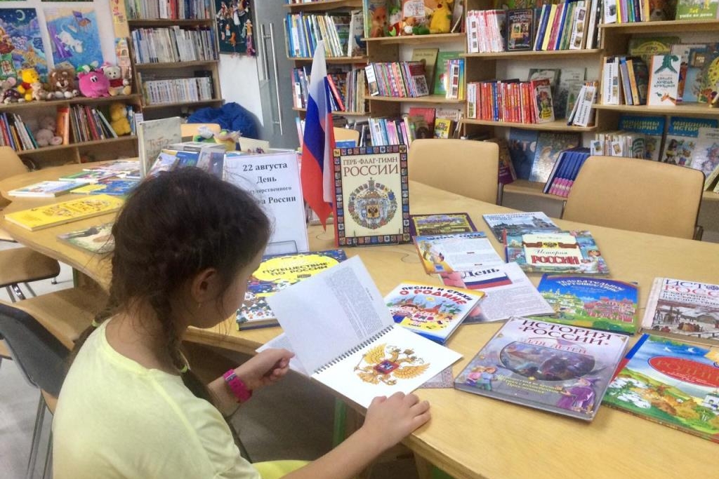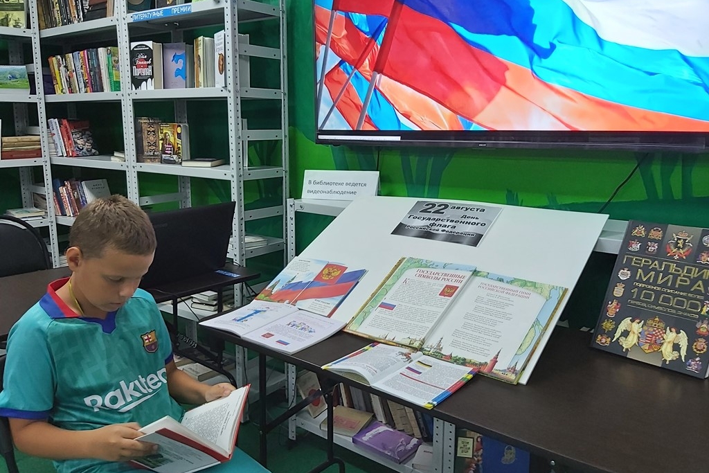 О флаге, истории российского флага вели разговор у книжной выставки читатели детской библиотеки №7. Они рассматривали книги Марины Головановой «Герб. Флаг. Гимн России», Глеба Калашникова «Гербы и символы», в которых рассказывается, кто изобрел флаг, какие цвета были у нашего флага в годы правления Петра Первого, Александра III, во времена Советского Союза.