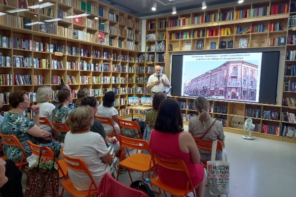 18 августа в библиотеке им. Пушкина (БУК) в рамках Всероссийского фестиваля «Книжный маяк Владивостока» состоялась краеведческая лекция «Русский Харбин». Сергей Юрьевич Еремин, действительный член Русского географического общества и основатель Исторической секции Русского клуба в Харбине, подробно рассмотрел исторические факты и события, связанные с Харбином, который появился благодаря масштабному проекту Российской империи — строительству Китайско-Восточной железной дороги.