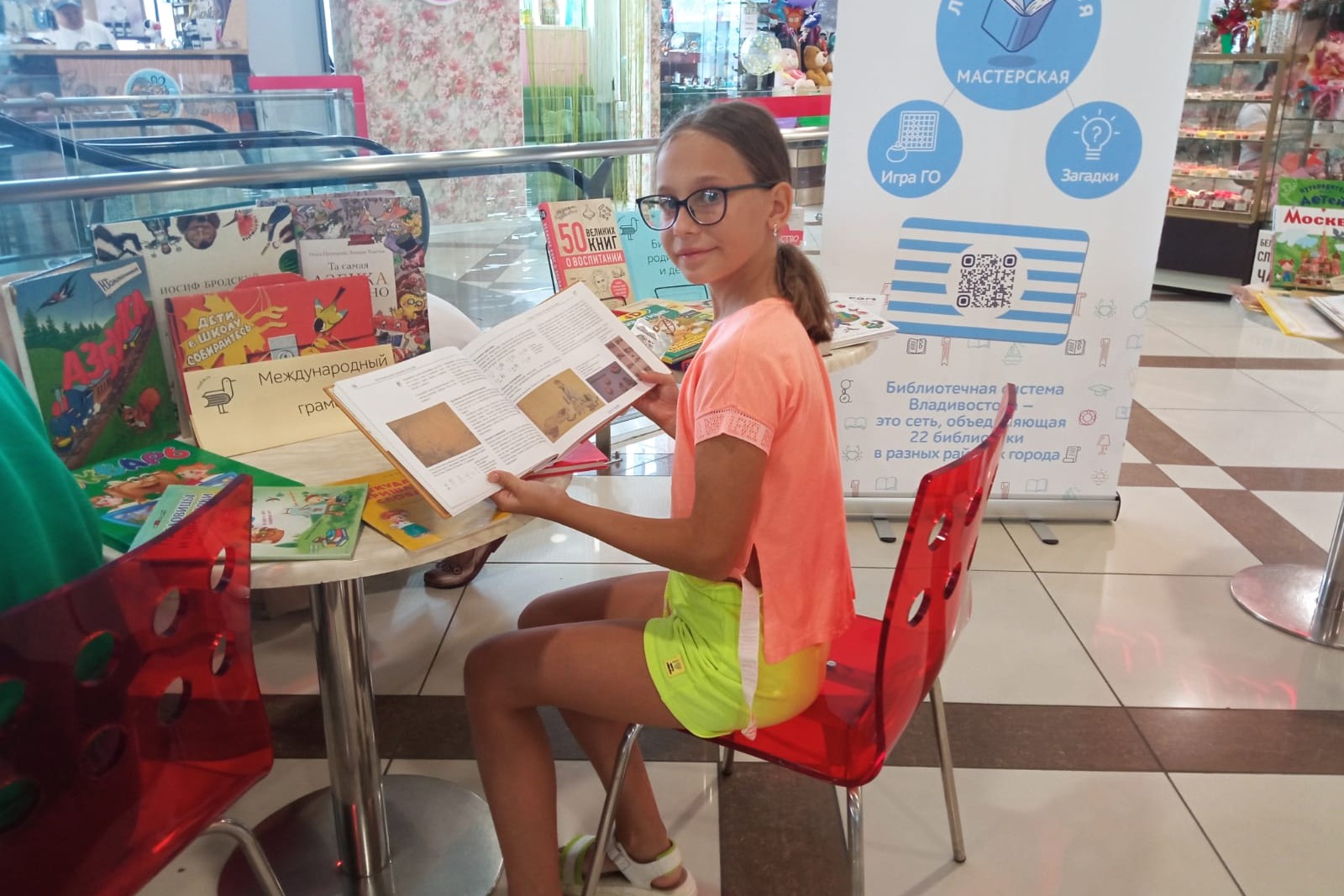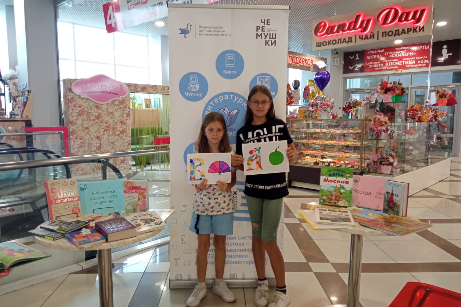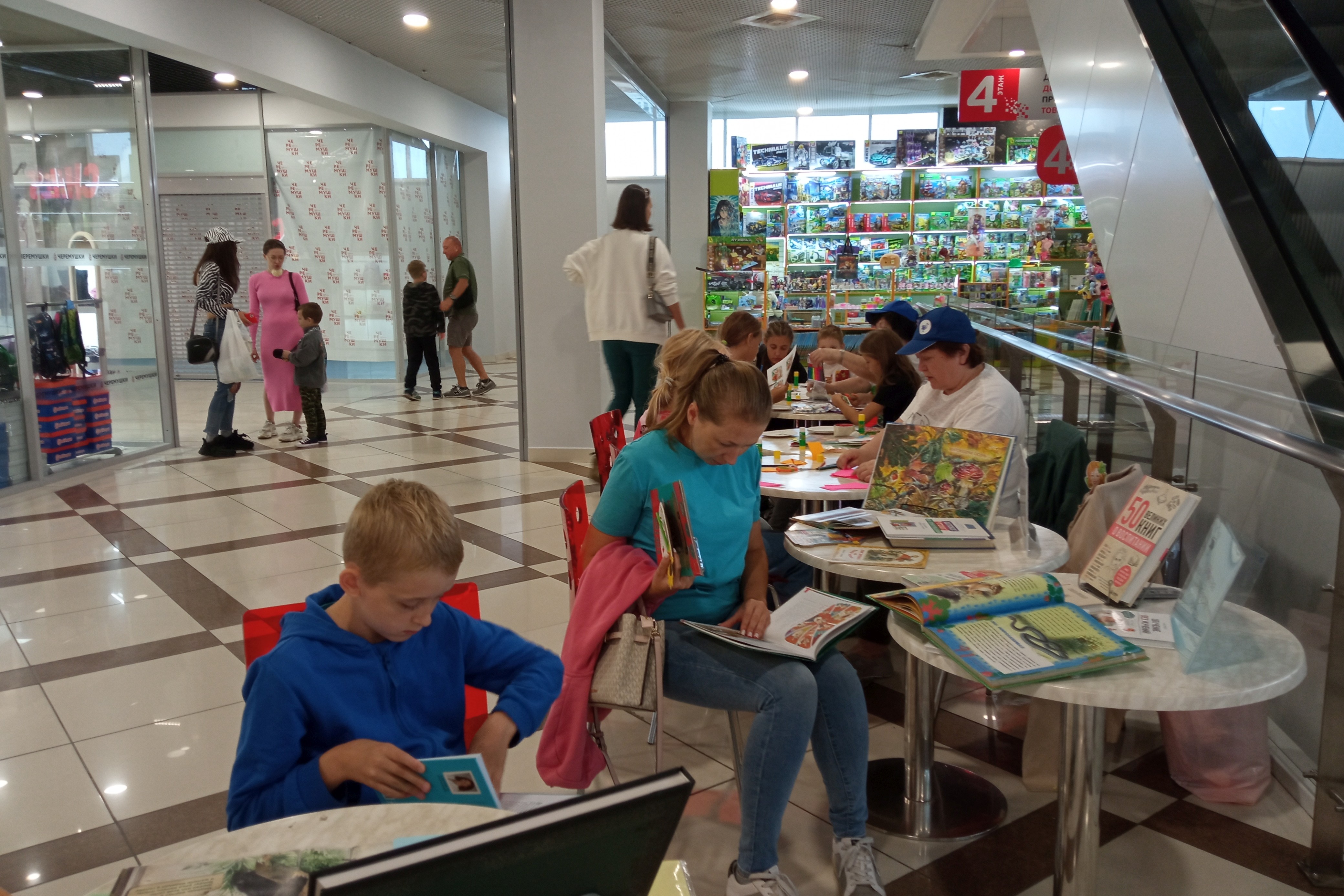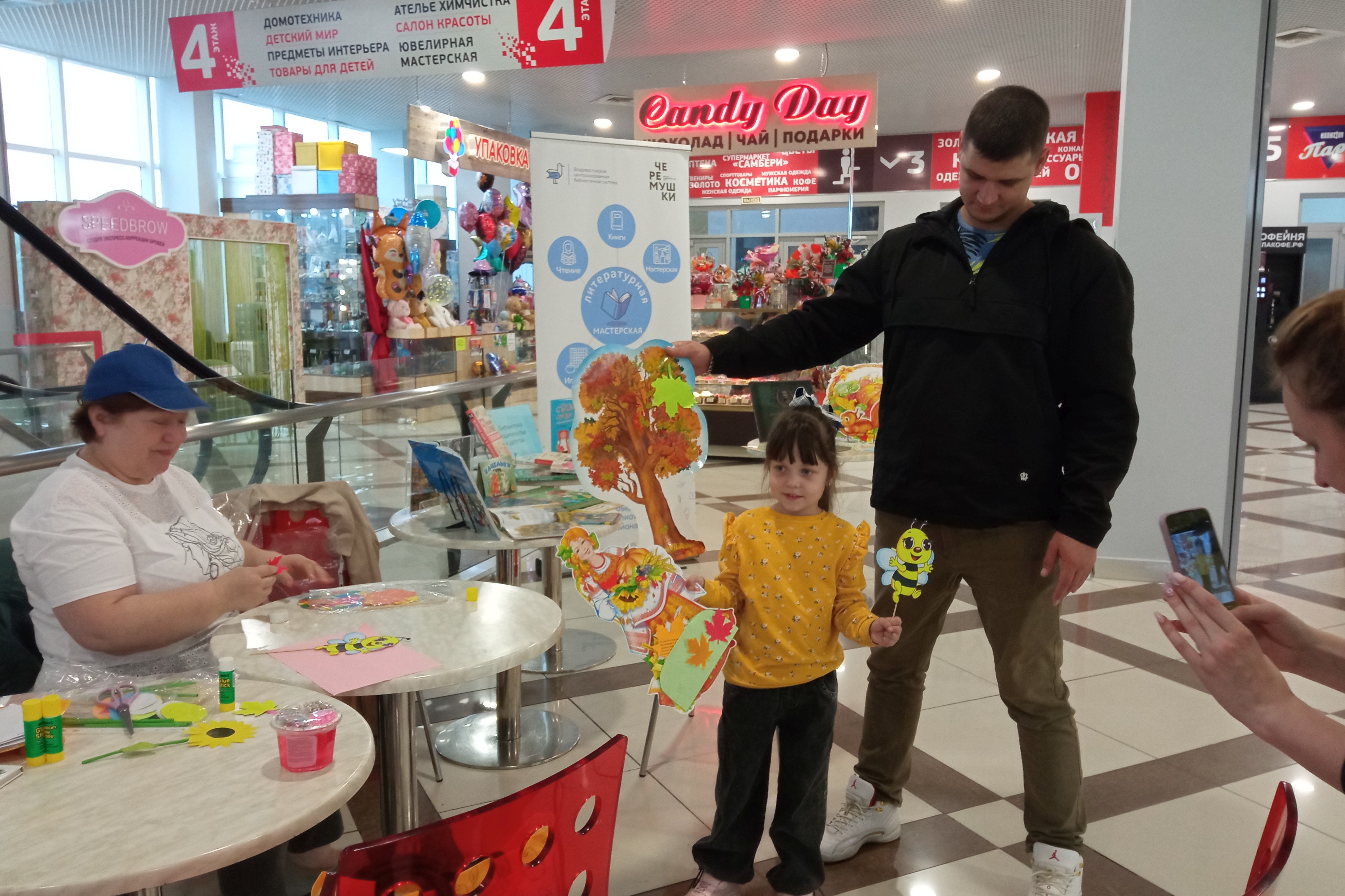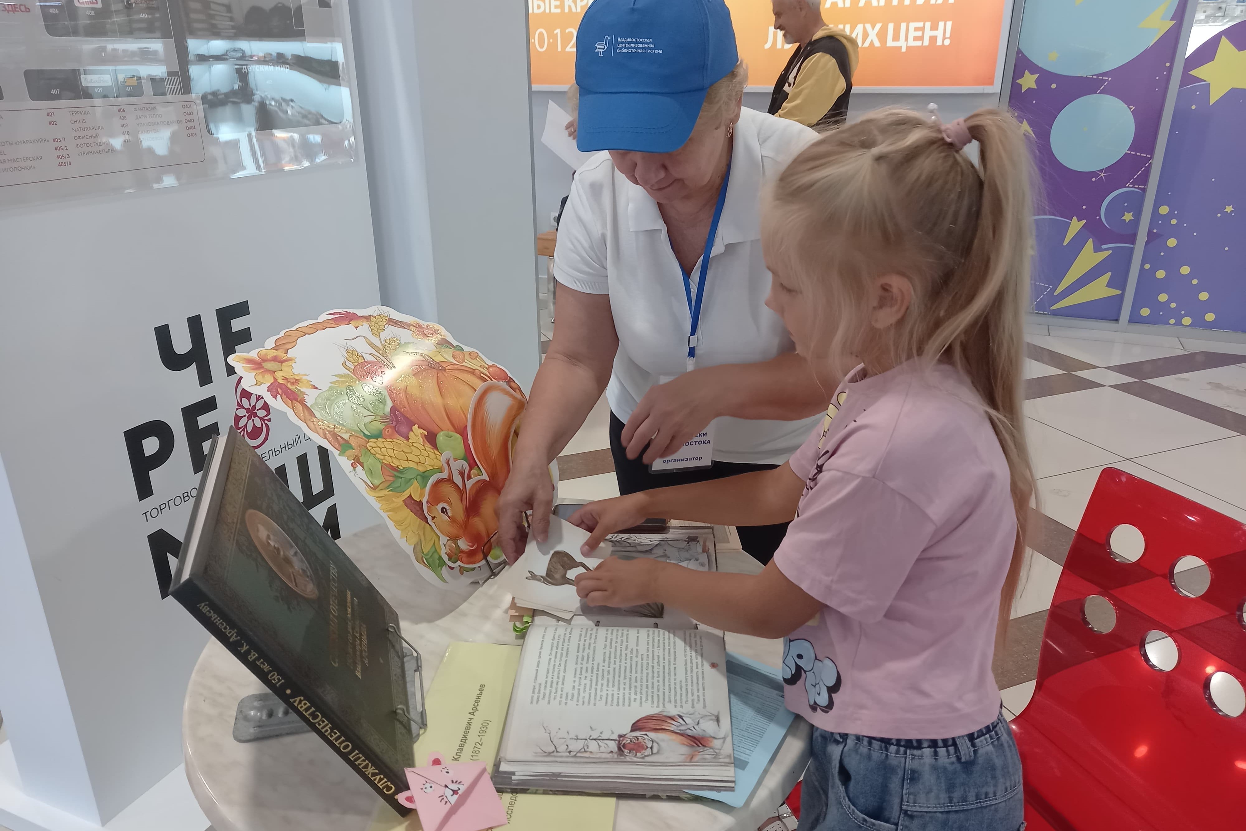 Открытая библиотечная площадка в ТРЦ «Черёмушки» работает с весны текущего года, и для многих посетителей центра она стала узнаваемой и привлекательной. Юные горожане и их родители останавливаются здесь, чтобы дать волю своему творчеству, участвуя в мастер-классах, или полистать действительно увлекательные современные книги. Книги привлекают внимание и родителей, ведь в их детстве не было книжек с дополненной реальностью. Как, к примеру, рассказы К.В. Арсеньева «Встречи в тайге». Эта книга нравится всем от мала до велика. Некоторые посетители скачивают приложение сами и самостоятельно наслаждаются природой Уссурийской тайги.