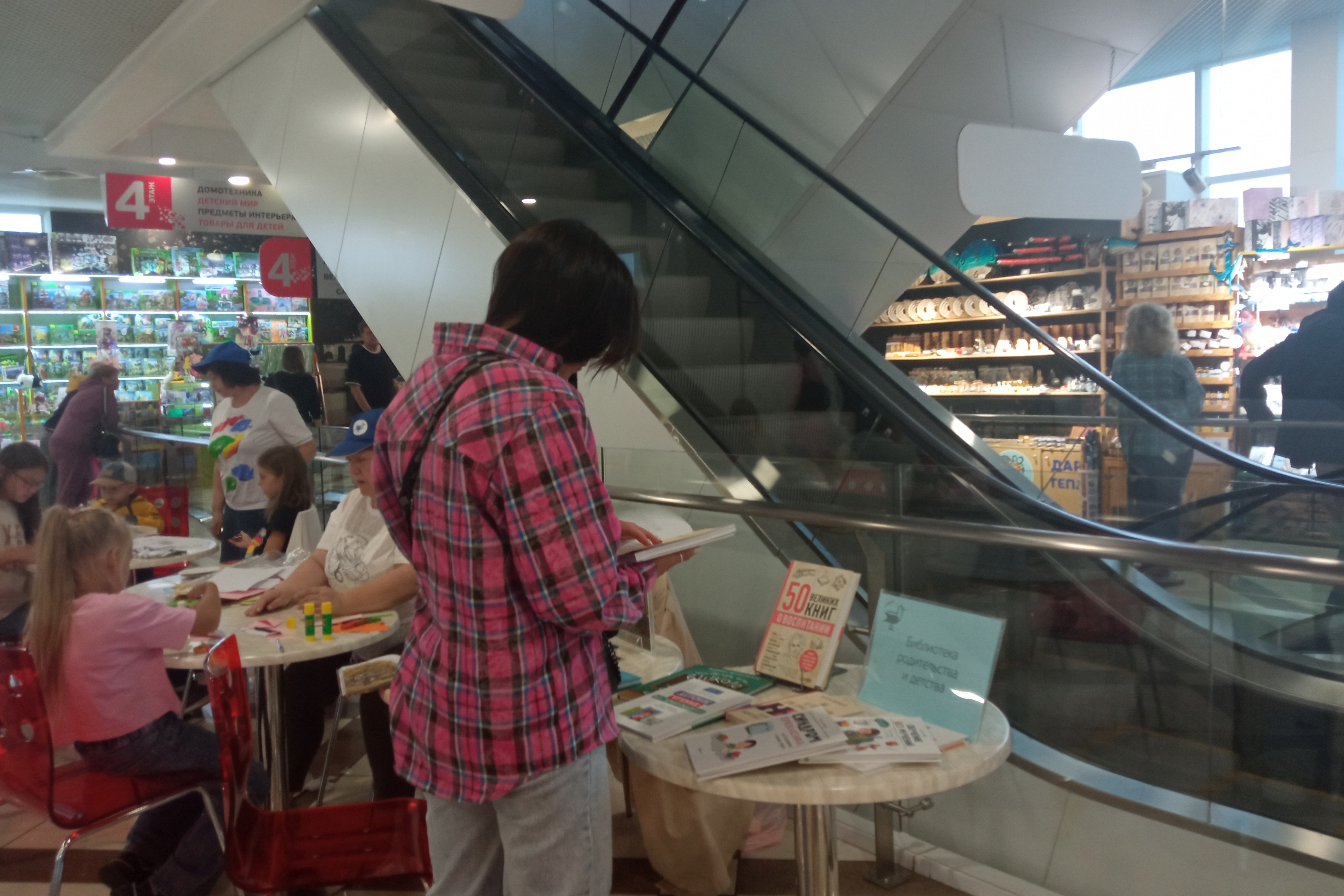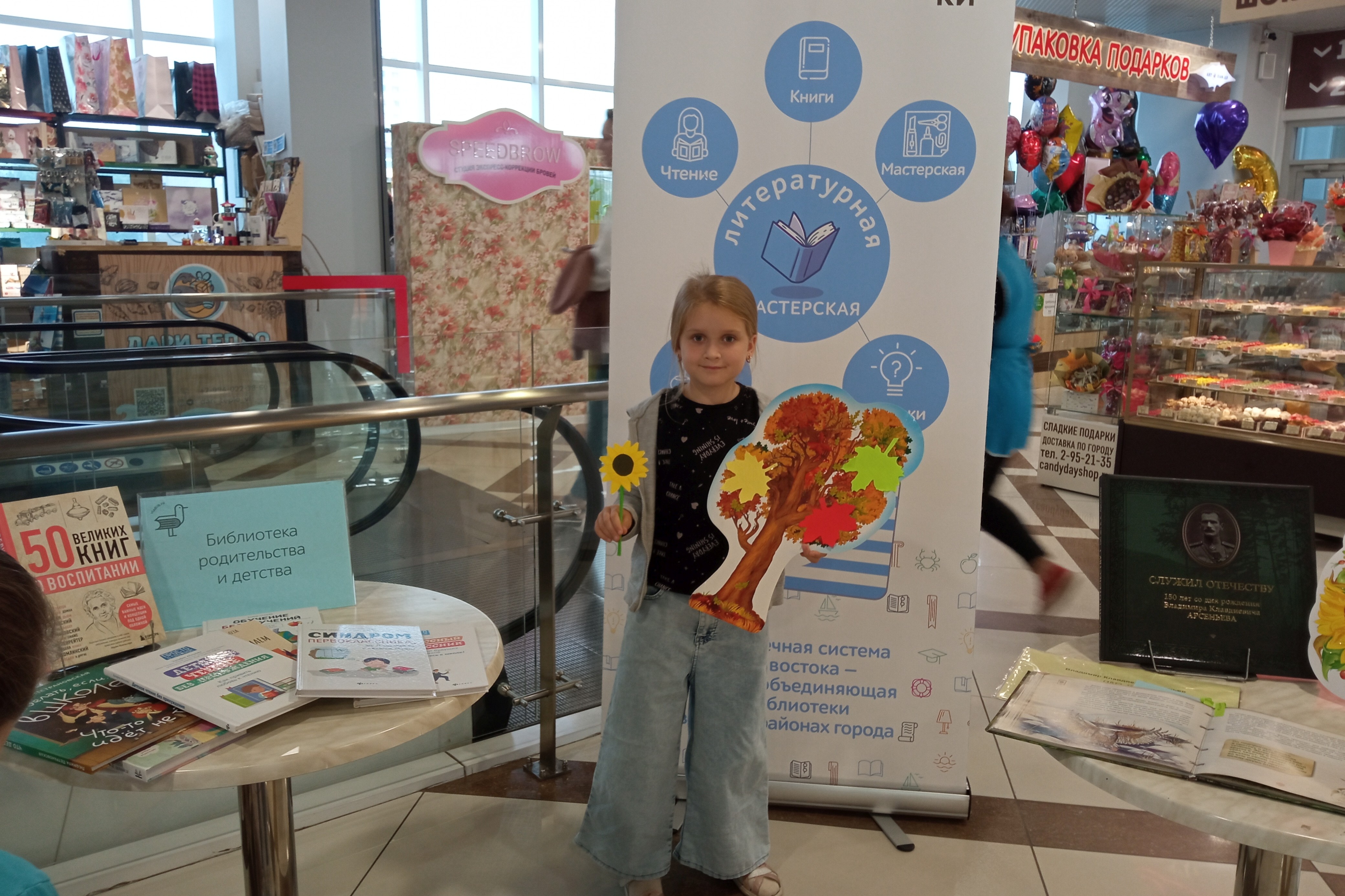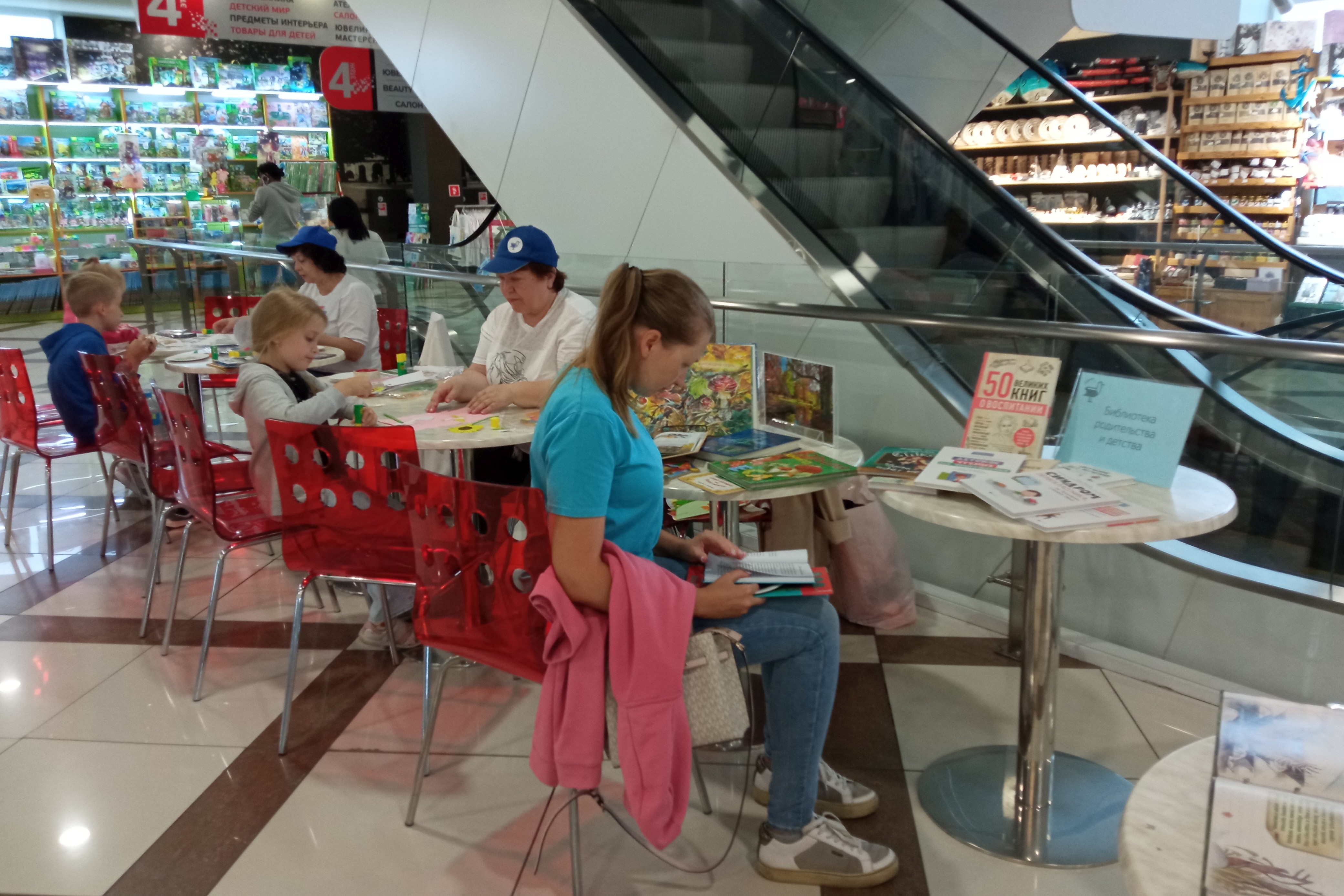 Две первых субботы сентября в ТРЦ «Черемушки» на Открытой библиотечной площадке работали как обычно, две зоны: книжные выставки и мастер-классы. Для молодых родителей была организована «Библиотека родительства и детства». Подбор книг оказался очень удачным. Молодые люди с интересом просматривали книги, фотографировали обложки книг, чтобы потом заказать в библиотеках. Наибольший интерес привлекли книги о детском чтении, причем чтение без принуждения, о воспитании детей, как научить ребенка дружить, как найти общий язык с подростком, как бороться с трудностями в школе и дома. Несколько книг были посвящены первоклассникам, Многие мамы с интересом их читали, и записывали названия книг. Молодые родители получили ответы на такие вопросы как помочь ребенку адаптироваться к школе, нужно ли учить с ним уроки, о психосоматике и школьных стрессах. Предложена читателям книга о 50 великих книгах о воспитании, где изложены важные идеи и концепции под одной обложкой.