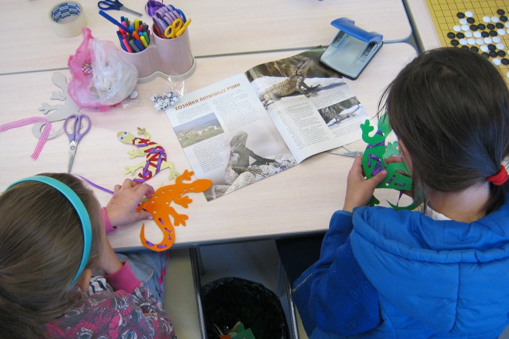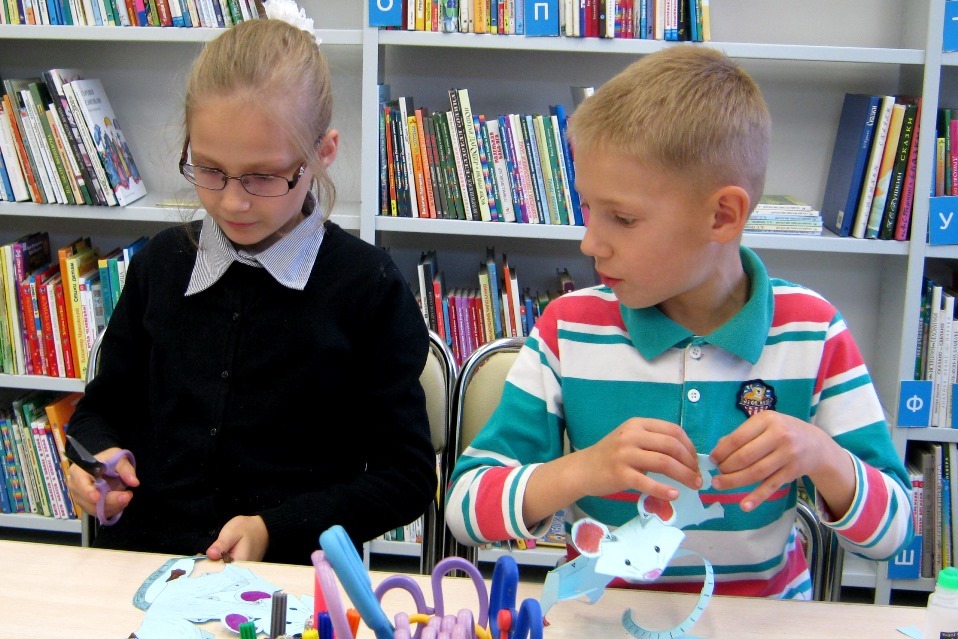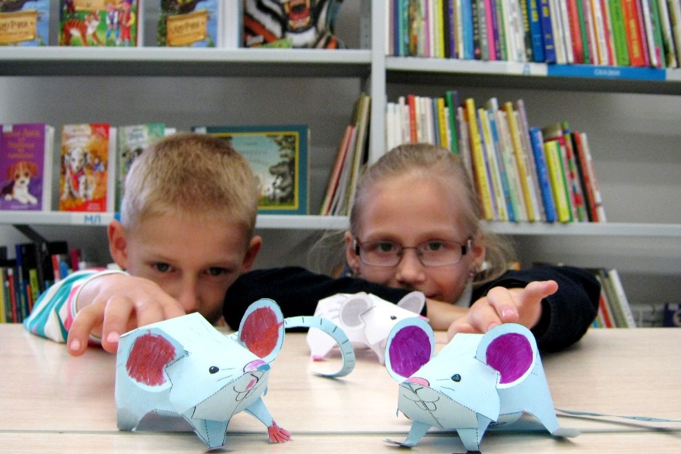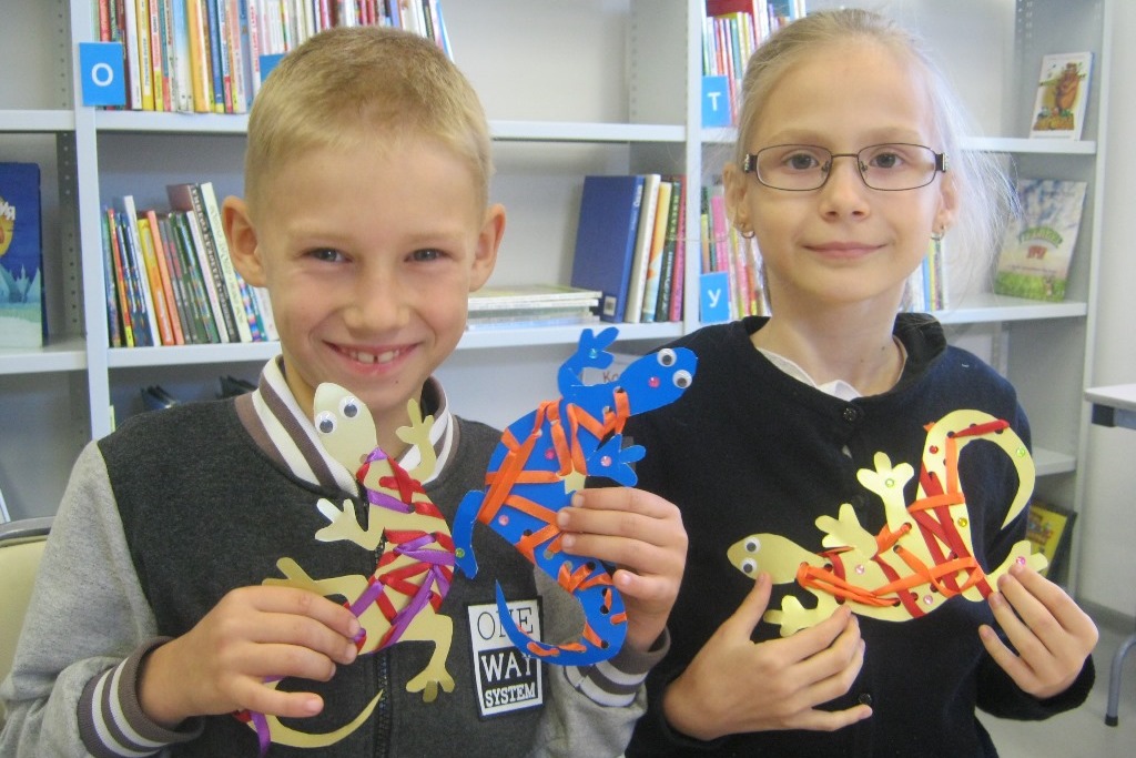Продолжаются занятия творческих мастерских в библиотеке №8. 22 октября для детворы помладше и тех, кто пришел в первый раз – занятие прошло отдельной группой, поделки выбрали полегче, чтобы в случае первой неудачи не пропало желание мастерить своими руками. Для постоянных участников творческих мастерских – задачка посложнее. Но ради такой красивой поделки стоило покорпеть. Не сказать, чтобы работа была очень сложная, скорее непривычная, потому что дети, как правило, чаще всего делают объемных животных их бумаги, действия там по одному алгоритму: вырезать, согнуть, склеить. Впрочем, и в таких поделках есть свои сюрпризы, например, благообразная кругленькая крыса оказалась довольно трудоемкой в исполнении. А вот изящную ящерку из цветной бумаги благородных цветов надо было не гнуть и клеить, а терпеливо украсить декоративной лентой. С этим легко справился тот, кто сам себе сноровисто зашнуровывает ботинки.