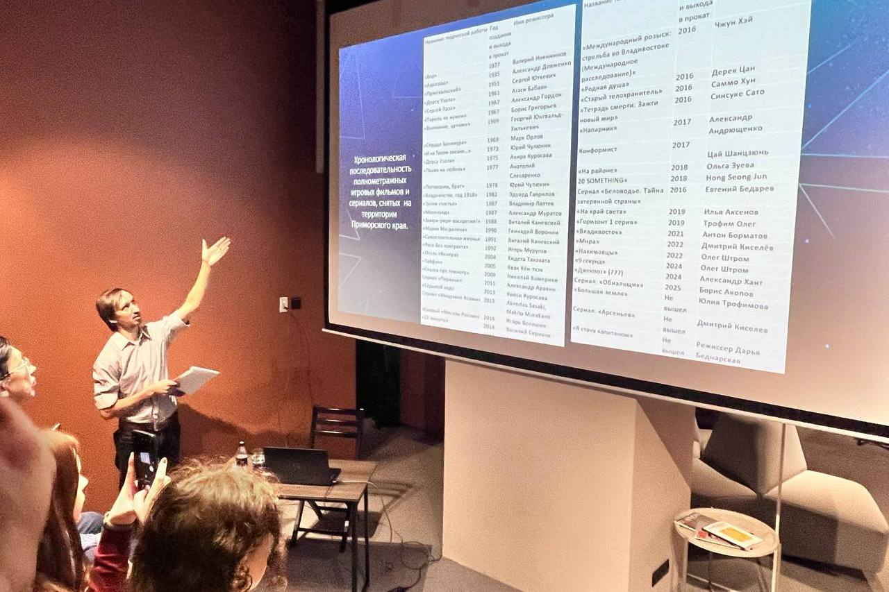 Заведующий библиотекой № 10 (ул. Верхнепортовая, 76) Илья Федоров в филиале Третьяковской галереи во Владивостоке провел 14 ноября культурно-просветительскую лекцию об истории кино в Приморском крае. Лекция посвящена съемкам фильмов, начиная с первых работ во Владивостоке и далее — по хронологической лестнице до наших дней.