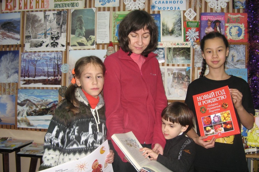 В новогоднем оформлении библиотек использованы все имеющиеся в арсенале украшения. Морозные узоры на окнах, причудливые снежинки, удивительные рукотворные игрушки – результат коллективного творчества. Особой магией обладают книжные выставки, оформленные в библиотеках к Новому году. Яркие и красочные, содержательные – они приковывают внимание, становятся путеводителями в историю праздника, раскрывают традиции и обычаи, рекомендуют.