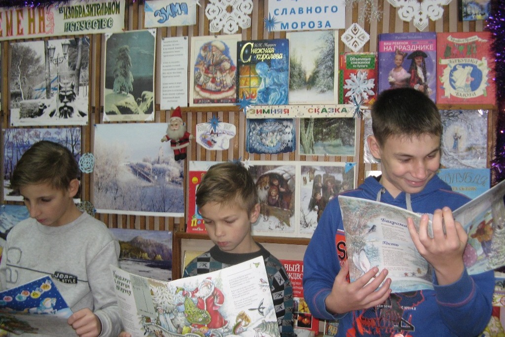 В новогоднем оформлении библиотек использованы все имеющиеся в арсенале украшения. Морозные узоры на окнах, причудливые снежинки, удивительные рукотворные игрушки – результат коллективного творчества. Особой магией обладают книжные выставки, оформленные в библиотеках к Новому году. Яркие и красочные, содержательные – они приковывают внимание, становятся путеводителями в историю праздника, раскрывают традиции и обычаи, рекомендуют.