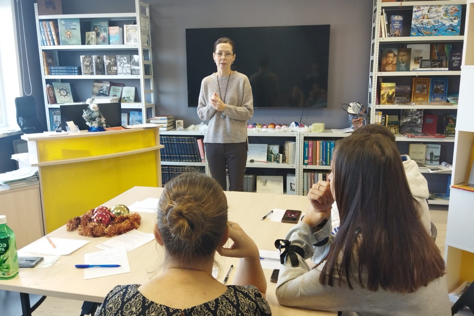 19 декабря в библиотеке №21 состоялся мастер-класс по искусству общения. Спикером выступила педагог и психологом Анна Юрьевна Мнякина. Это была третья встреча, где Анна Юрьевна рассказывала о приемах выступления на публике и некоторые хитрости при общении с людьми.