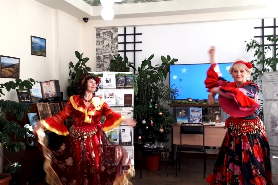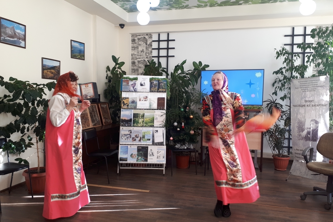В предновогоднем празднике в библиотеке им. И.У. Басаргина приняли участие члены клубного объединения «Исток», куда входят самые активные и творческие читатели библиотеки почтенного возраста. Они не перестают удивлять новыми креативными подходами в проведении встреч. 18 декабря праздничный переполох открыла вокальная группа «Россиянка», в их исполнении звучали русские народные, лирические и задорные песни. Прекрасные голоса, милые сердцу мелодии создали тёплую предновогоднюю атмосферу. Расходится никак не хотелось. Смолкли бурные овации, затих, опустел зрительный зал, но в воздухе всё ещё парит атмосфера радости, возбуждения, от прошедшего праздника…