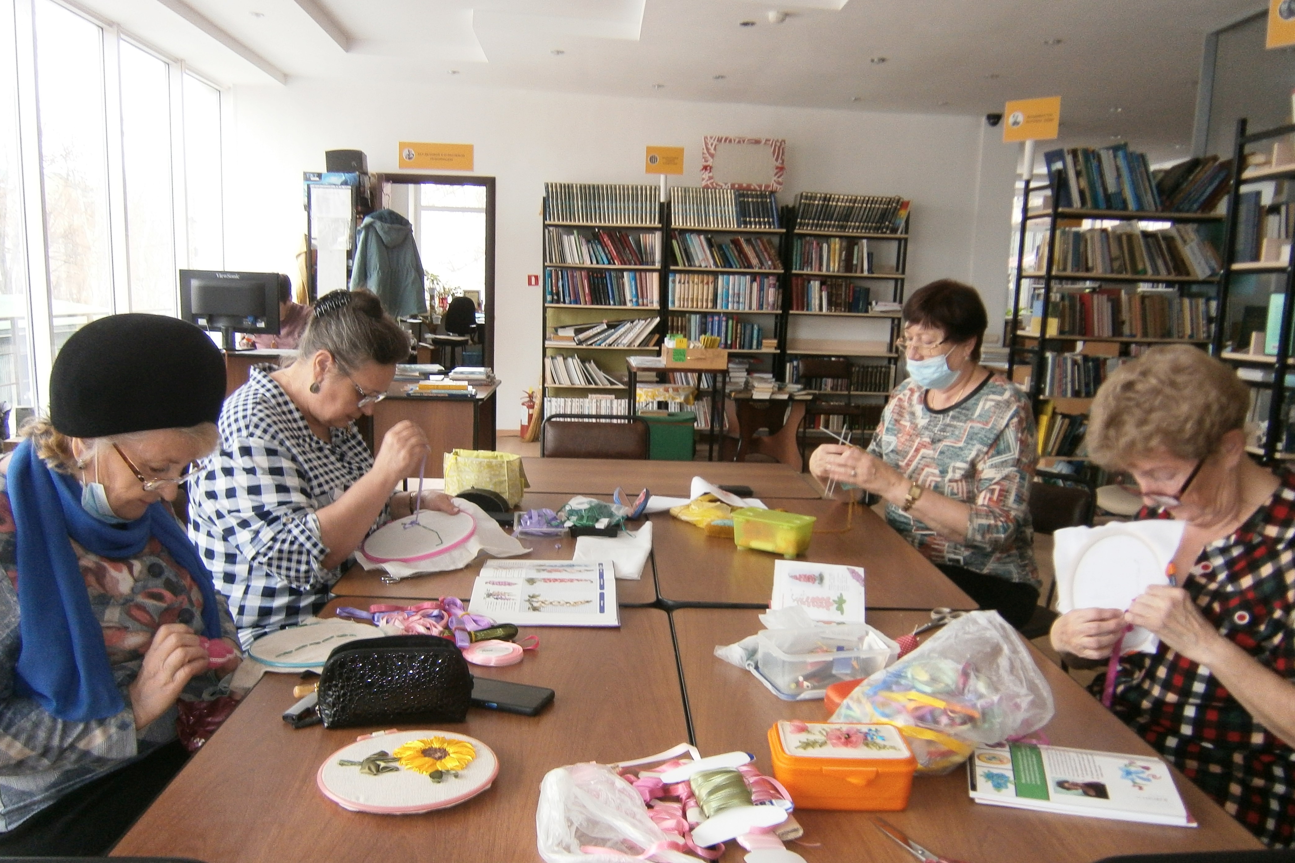 Очередная предновогодняя встреча участниц творческой мастерской состоялась в библиотеке № 3. Знаете, как поднять себе настроение в пасмурный зимний день? Наши мастерицы знают рецепт: это солнечные подсолнухи из домашнего задания. Замечательные получились вышивки. В этот раз вышивали – цветок «наперстянка». У каждой мастерицы – своя. Предновогодние хлопоты очень волнуют наших мастериц, как и любых хозяек, шел активный обмен идеями декорирования квартиры и, разумеется, рецептами фирменных блюд. К тому же еще они и активные читательницы. Книжки предпочитают жизненные. Любимые авторы: Мария Воронова, Наталья Миронова, Халед Хосейни и др. Творческая мастерская открыта для всех желающих присоединиться. А 23 декабря библиотека организовала праздничное чаепитие. Гости библиотеки читали стихи о зиме, участвовали в занимательных конкурсах. Атмосфера радости, веселья и дружеского общения царила в библиотеке.