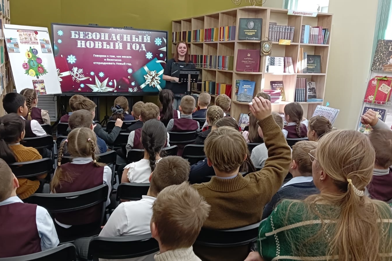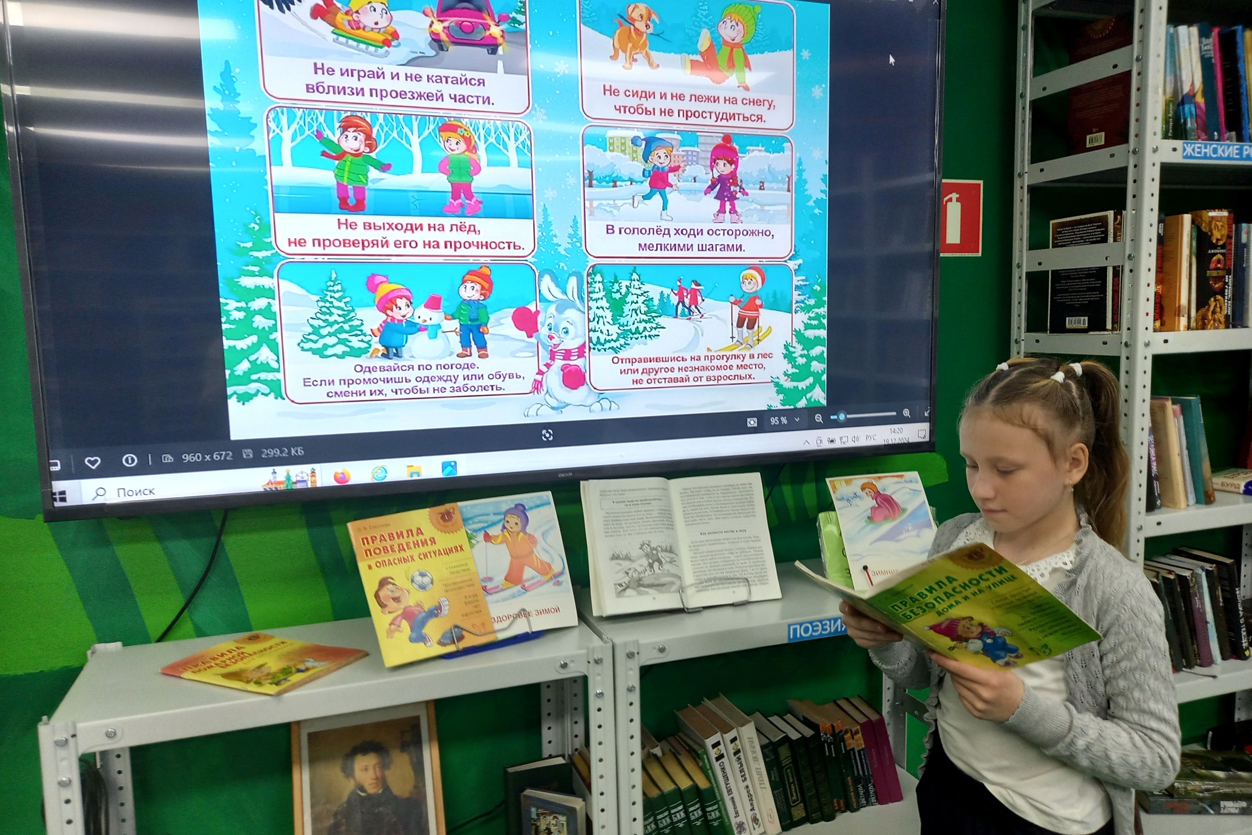 19 декабря в библиотеке № 4 второклассники СОШ № 22 приняли участие в мероприятии — азбука поведения «Безопасно в Новый год», чтобы узнать, как избежать опасности в зимнее время, а также сохранить себя и своих близких во время новогодних гуляний. На мероприятии дети прослушали правила безопасного проведения на зимних каникулах, такие как: не играть без присмотра взрослых с хлопушками и бенгальскими огнями, избегать переохлаждения на улице, быть крайне аккуратными во время гололёда и т.д. Участники мероприятия посмотрели мультфильмы о правилах безопасного поведения, что помогло лучше усвоить полученный материал.