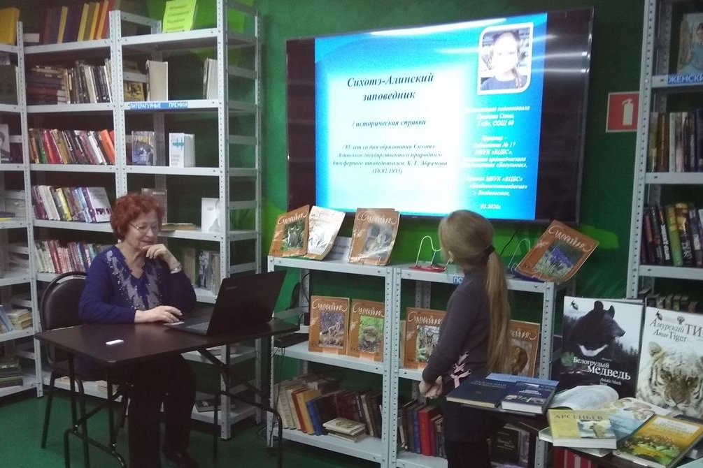 20 февраля мероприятие началось с лекции-беседы о заповедных местах Приморского края члена Общества изучения Амурского края, экскурсовода А.К. Шашковой. Её интереснейший рассказ, под визуальный ряд слайд-шоу от библиотеки, был с искренним вниманием воспринят даже самыми непоседливыми мальчишками. Уделено внимание и экологическому воспитанию, с акцентом на правилах поведения в лесу и парковой зоне. После лекции Алла Константиновна ответила на все вопросы, интересующие детей.