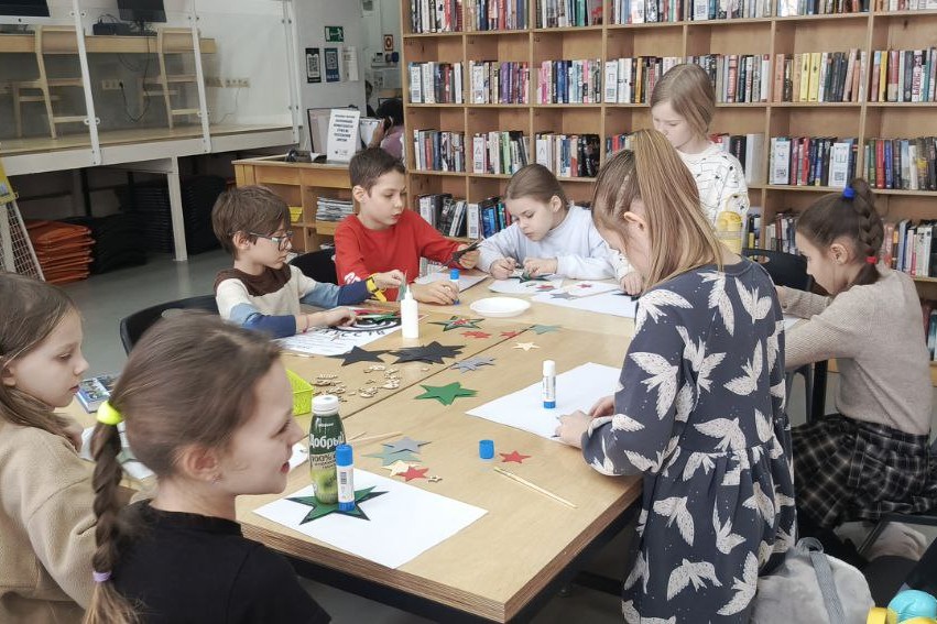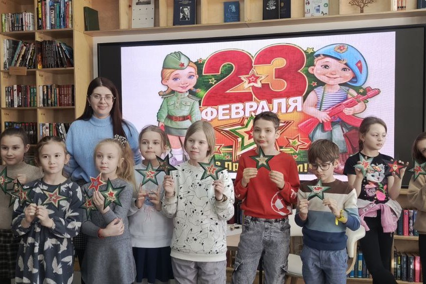 Тематический мастер-класс организовала библиотека № 1 имени А.С. Пушкина для учеников школы ЦРР 21 февраля. Ребята с большим энтузиазмом вовлеклись в процесс создания аппликации — сувенира, как памятного подарка, созданного собственными руками. Мероприятие сопровождали рассказы из военно-патриотической хрестоматии для детей, трогающие душу. Мастер-класс увлек детей и позволил им проявить свои творческие способности. В результате для пап, дедушек, братьев смастерили объемные звезды.