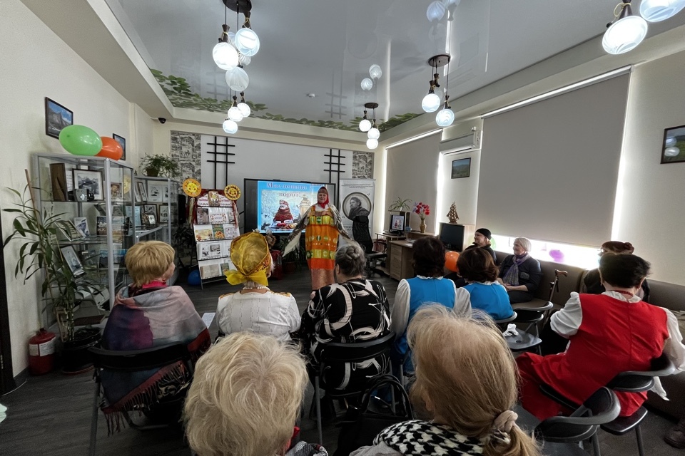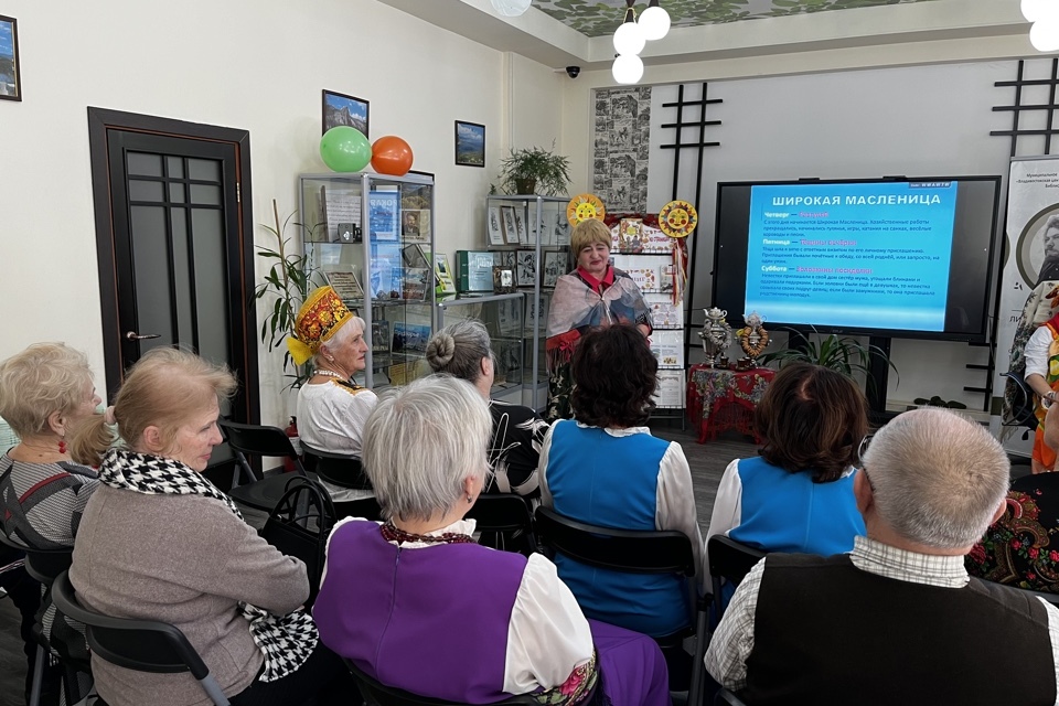 Масленица – многовековая традиция, которую представила библиотека во всём её жанровом многообразии: от глубокой истории, когда в 1092 году впервые упоминается в Лаврентьевской летописи Мясопуст — предвестник Масленицы, упоминания путешествующих европейцев в XVI о Сырной неделе «…господа пируют, наряжаются, простой народ работает, но тоже в предаётся чревоугодию», до задорной частушки в исполнении гостей Риммы Олейник, Раисы Цирюлик, Нелли Чепурной и лирической гитары Виктора Рыбакова! Были представлены слайды с картинами Кустодиева, Сурикова, Сычкова, Маковского, картины современных художников, доказывая, что праздник жив, пока жива память народная.