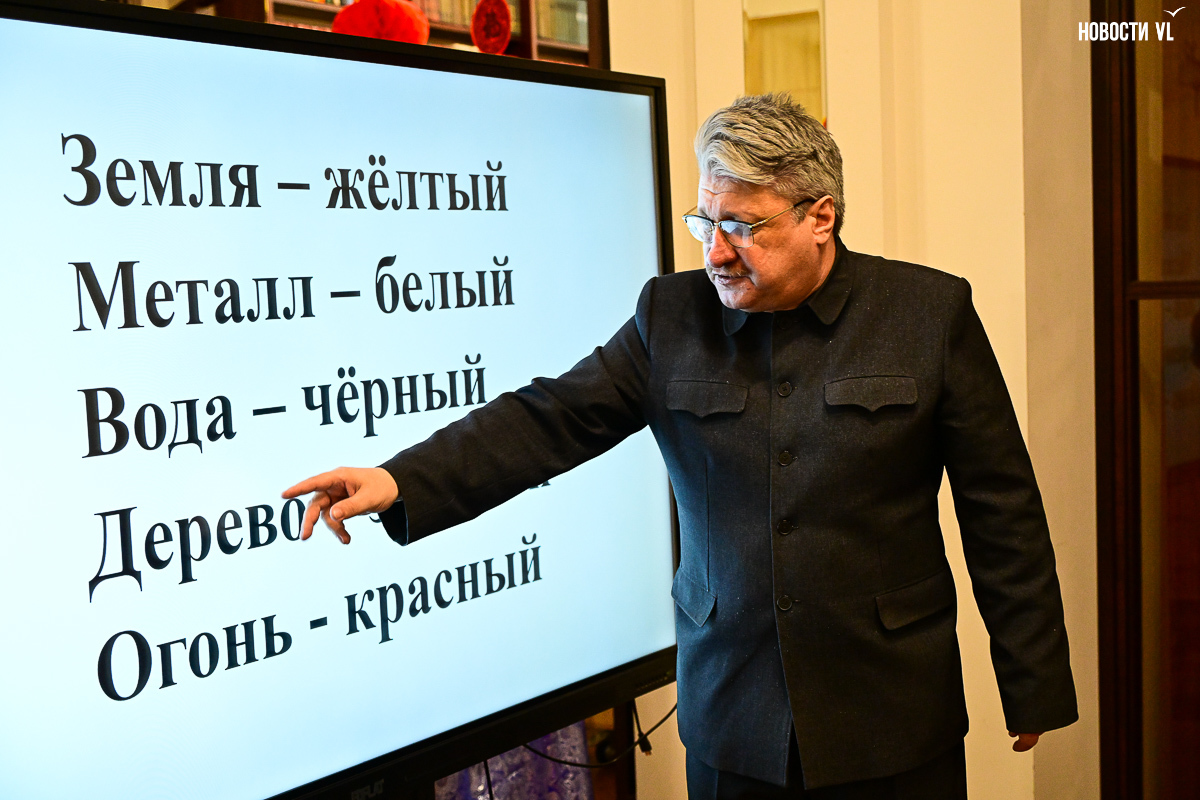 После представления зрителям предложили остаться и послушать лекцию профессора Невского института языка и культуры, китаеведа Германа Борисовича Дудченко – он рассказывал о китайском календаре и летоисчислении, цветах и стихиях животных, о том, как в Китае готовятся к Новому году, и какие ещё праздники отмечают в соседней с нами стране.