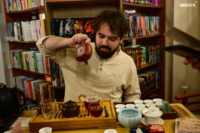 А в перерывах гостей угощали настоящим китайским чаем и предлагали присоединиться к полноценной церемонии – с проливом посуды и рассказом о различии видов одного из главных национальных напитков России и Китая. Причём лекции из-за звукового ландшафта библиотеки можно было слушать не отходя от стола с чашками и бодрящим напитком, погружаясь в атмосферу праздника.