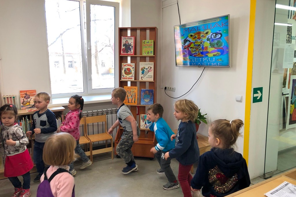 19 апреля дошколята их детского сада № 17 пришли познакомиться с библиотекой. Они отгадывали загадки о сказочных героях, читали и слушали стихи Ирины Токмаковой, Самуила Маршака, Корнея Чуковского и изображали их героев. Малыши посмотрели мультфильм и с удовольствием порисовали мелом на стенах в игровой комнате. Ребятам очень понравилось весело и интересно проводить время в библиотеке.