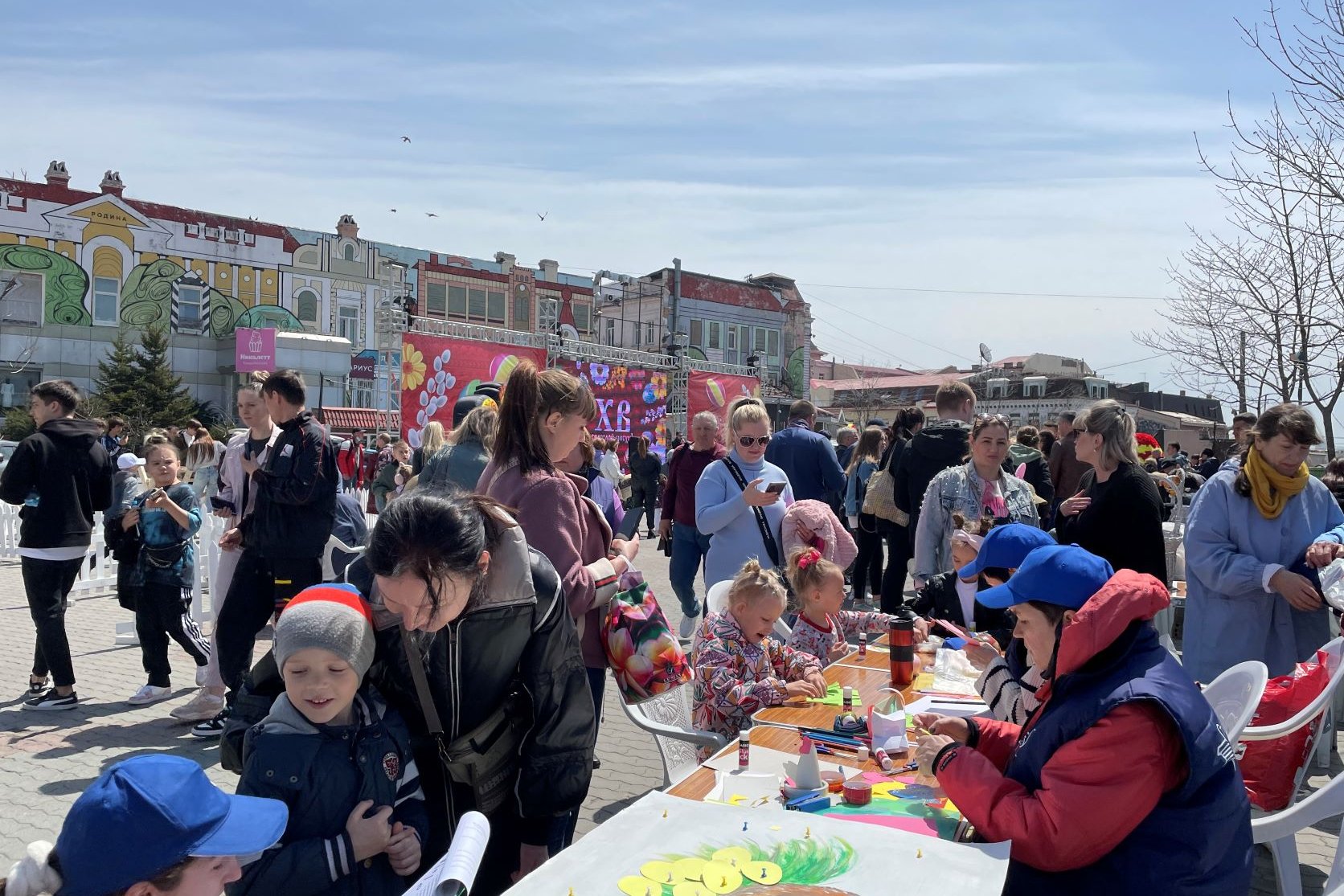 Широкое красивое и веселое действо проходило в районе улицы адм. Фокина 24 апреля. Городской праздник в этом году проходил на пешеходной площадке на улице Адмирала Фокина. Здесь была организована сцена, с которой творческие коллективы поздравили владивостокцев народными песнями и плясками. Праздник ярмаркой, играми и концертом на площади Адмирала Фокина.