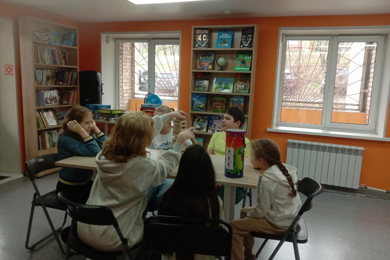 В это время дети занимались в зале детского абонемента. Ребята играли в классические настольные игры, такие как шашки, «Морской бой», с удовольствием познакомились с новыми играми, полученными библиотекой в рамках модернизации. Получили удовольствие от проведенного в библиотеке времени.