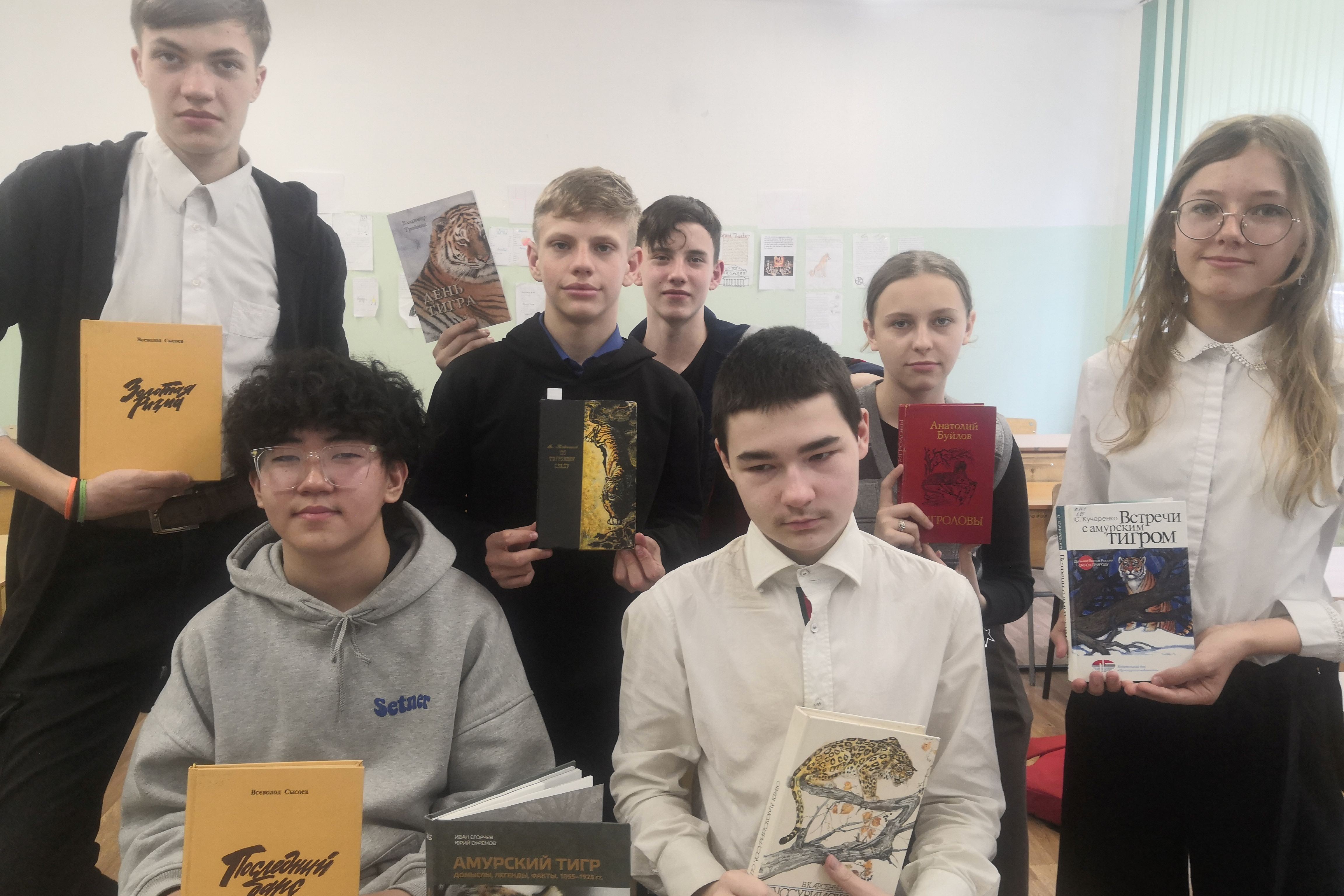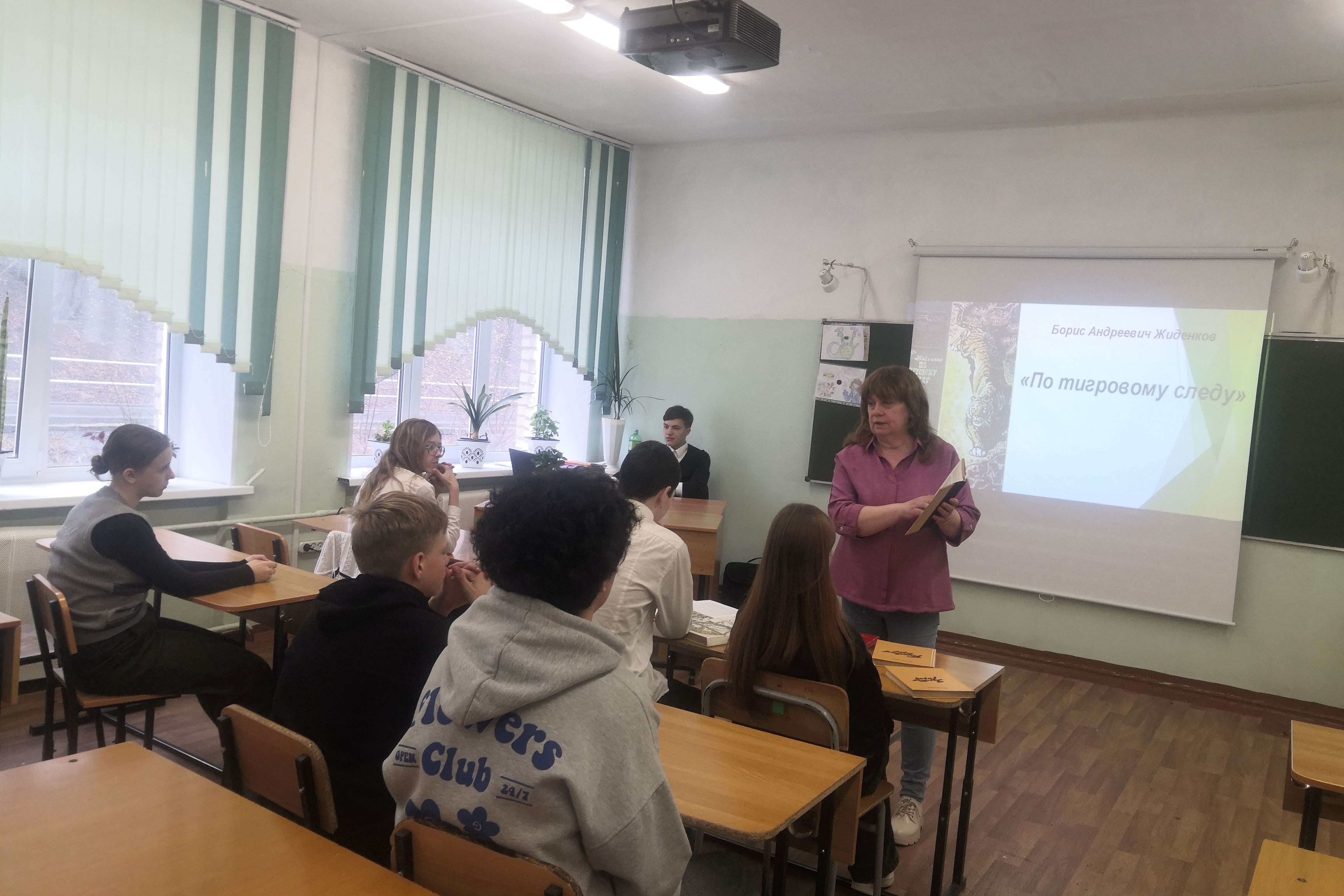 Очередной краеведческий урок «Таежными тропами» в рамках проекта «В краю синих сопок» провела библиотека № 16 для учащихся 8 «А» и 8 «Б» классов СОШ № 43. Он был посвящен документальной книге Бориса Андреевича Жиденкова «По тигровому следу».