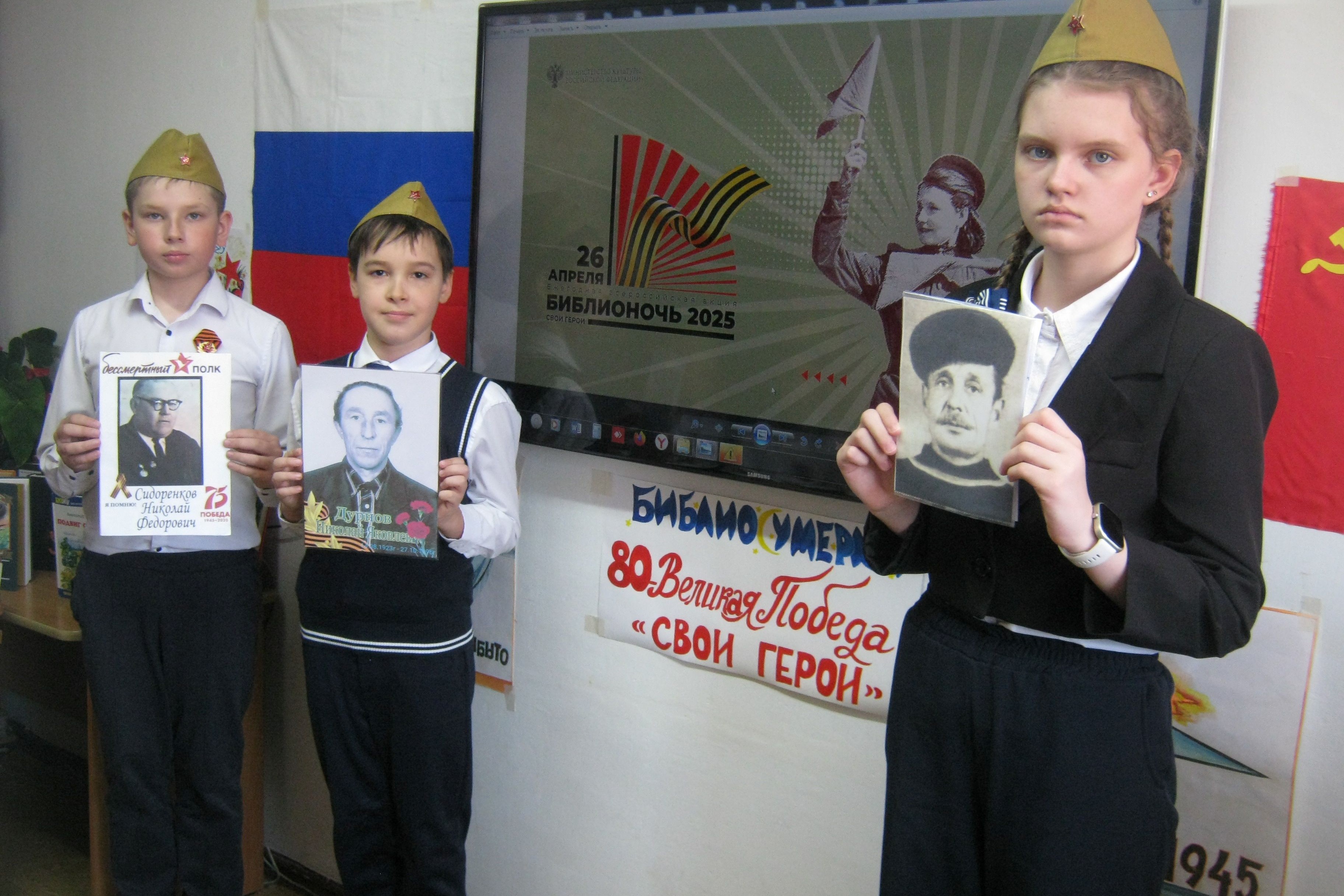 В библиотеке № 15 (ул. Волкова, 11) прошла акция «80 Великая Победа 23 апреля. «Свои герои» в рамках Всероссийской акции «Библионочь — 2025». Участниками мероприятия стали четвертые классы ЦО «Вектор», школа № 54.