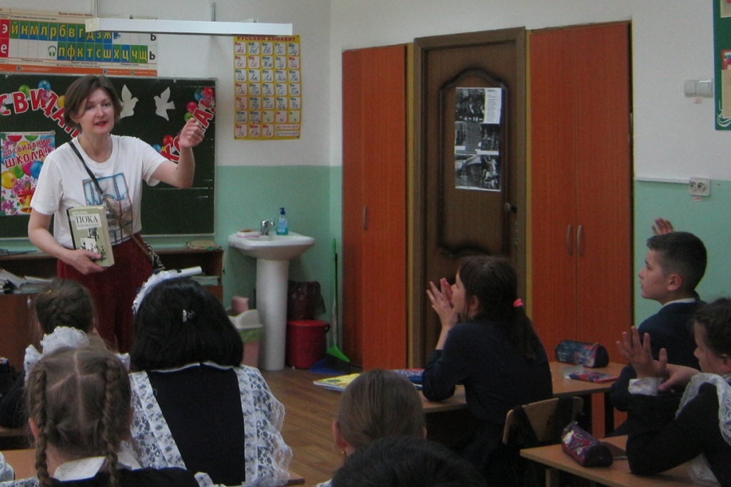 18 мая библиотека № 8 приняла участие в одном из завершающих уроков учебного года для учащихся 4 «Б» класса школы № 35. Четвероклассники в этом году выпускники, окончили начальную школу. В качестве послания самим себе в будущем 4 «Б» класс сделал работу из рисунков, где целое состоит из фрагментов, как общество состоит из индивидуумов.