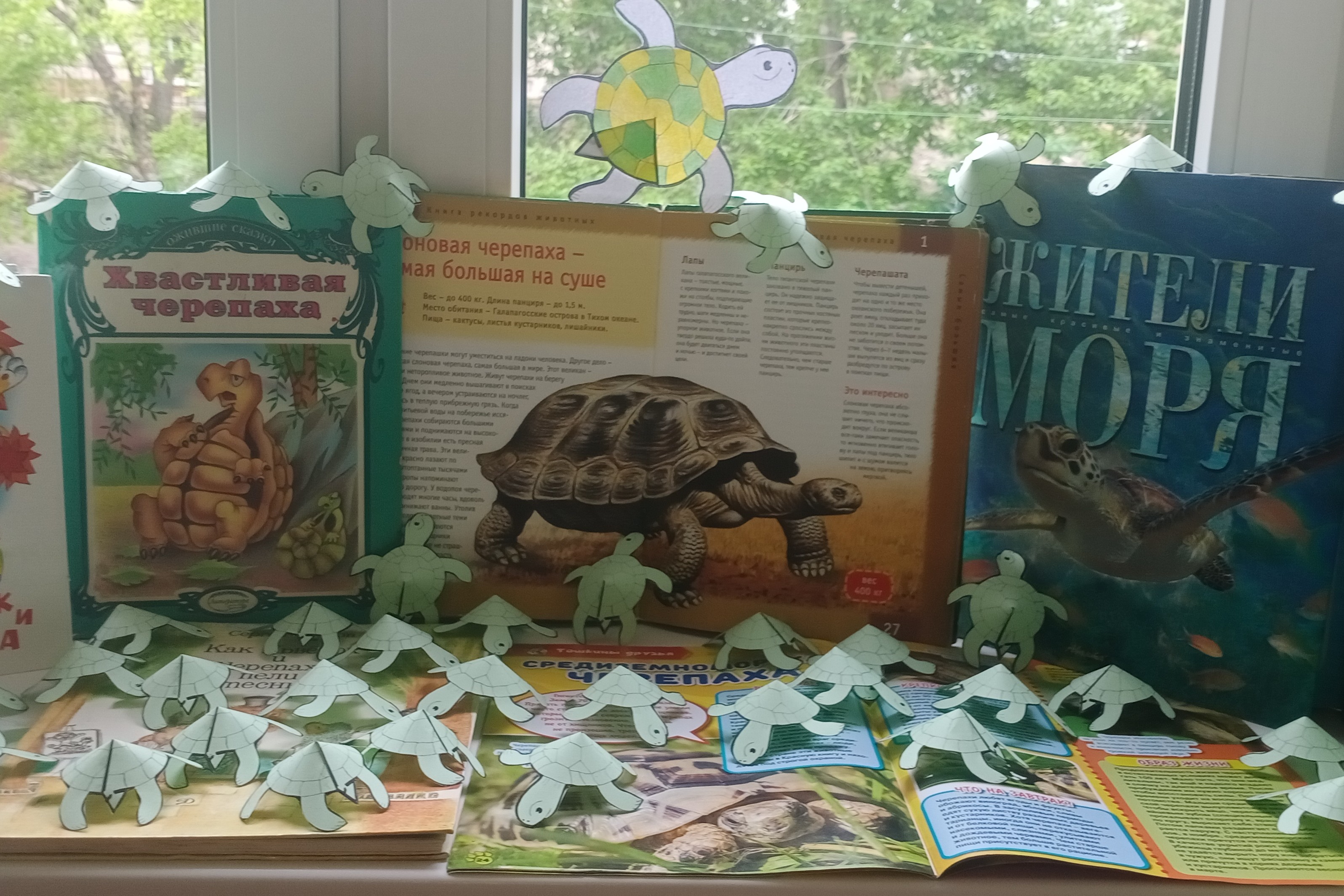 Дошкольникам были представлены красочные энциклопедические издания, содержащие сведения о разнообразных видах черепах. Дети узнали, что черепахи бывают морскими и сухопутными; что домик черепахи называется «панцирь», у разных черепах панцирь тоже разный; что черепаха является символом мудрости, богатства и долголетия. Самыми древними и крупными являются слоновые черепахи, живущие на Галапагосских и Сейшельских островах, которые сейчас находятся под угрозой уничтожения. Удивили детей и необычные названия черепах: зубчатая, лучистая, звездчатая, паучья, угольная, плоскохвостая, попугаевоголовая, пантеровая, шишковатая. Ещё дошкольники прослушали поучительную сказку о хвастливой черепахе, которая вызвала много радости и веселья.