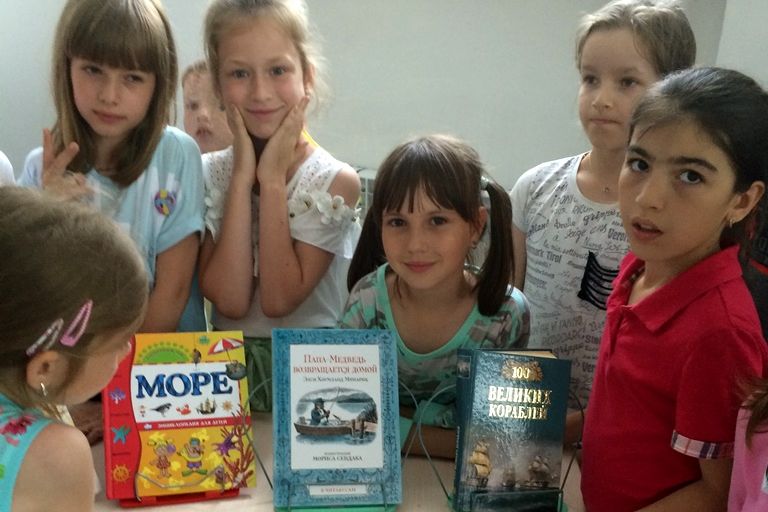 Об этом рассказали 24 июля в библиотеке № 15 детям из МДОУ Д/С №162. Знакомство с книгами морской тематики вызвали у детей бурю эмоций. Книги красочные, хорошо рисованные корабли и моменты сражений дополнялись доступным текстом. Святослав Сахарнов в книге «История корабля» рассказывает о древних кораблях Египта, Финикии, Греции и первых русских «Викториях». А. Митяев знакомит малышей с книгой «Рассказы о русском флоте» и «Книга будущих адмиралов», где есть рассказ о морской азбуке, которая читается с помощью разноцветных флажков.