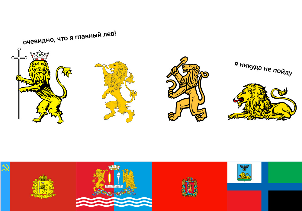 Лев — один из самых популярных геральдических символов. Его можно встретить на флагах Владимирской области, Ивановской области, Красноярского края и на флаге Белгородской области.