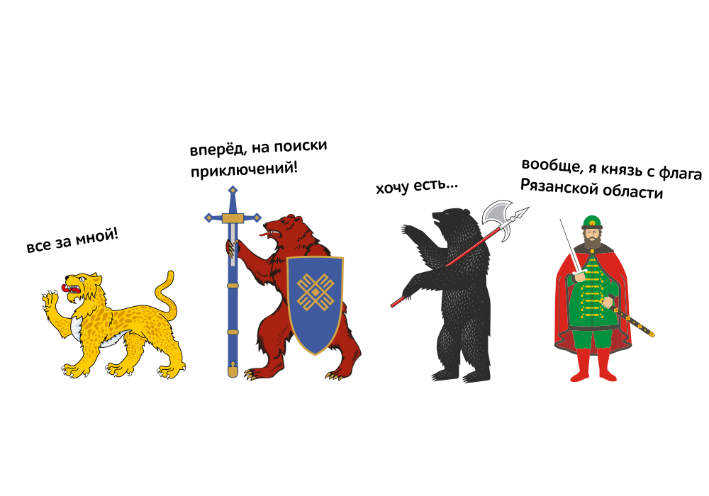 Хорошо вооружённые медведи расположились на флагах Ярославской области и Республики Марий Эл. А вот медведь на флаге Пермского края мягкий и пушистый.