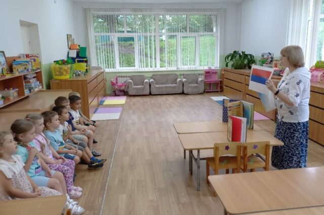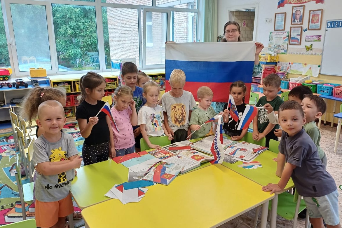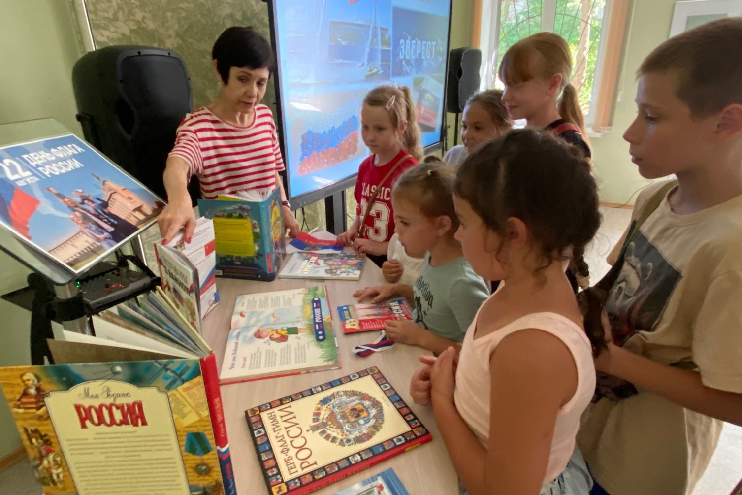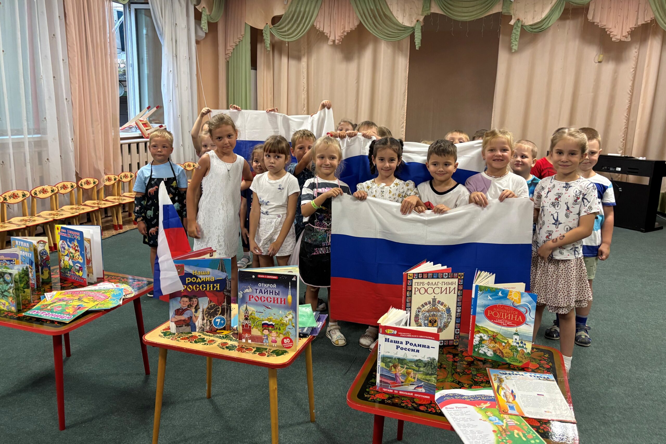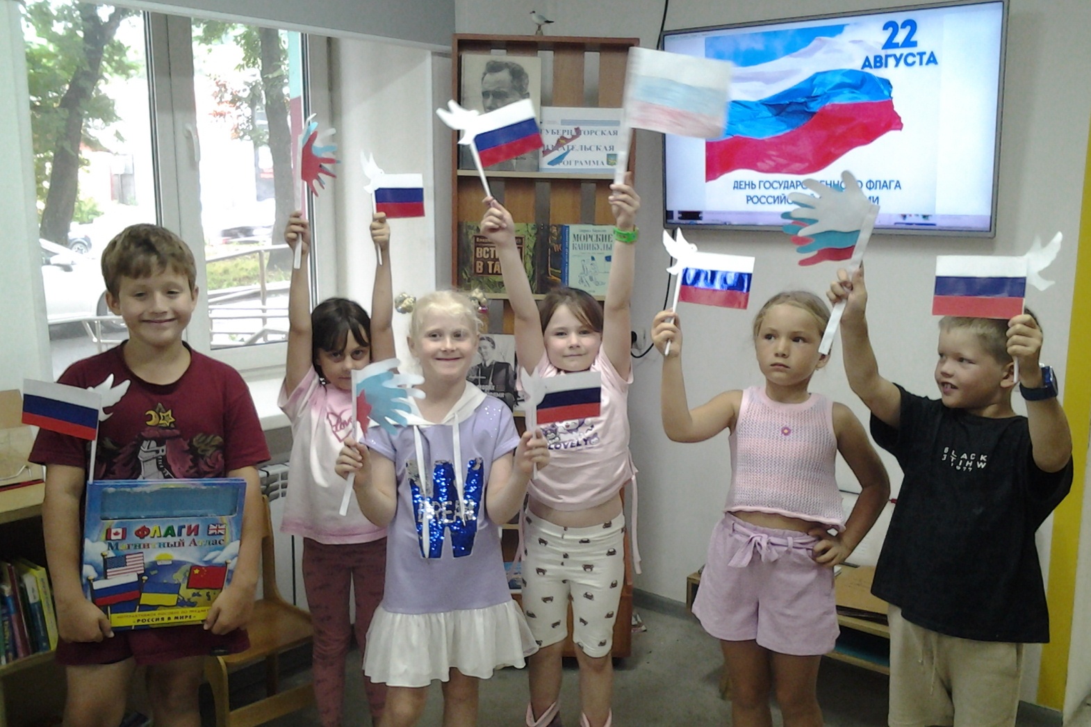 22 августа детская библиотеке № 7 (ул. Калинина, 281) провела для воспитанников детского сада № 39 литературно-патриотический час. Послушали стихи о флаге, выучили наизусть стихи Владимира Степанова «Флаг России». Дети в простой и запоминающейся форме стихов вспомнили, что означают цвета российского триколора и через игры начали понимать, что флаг – это не просто красивое полотно, а особый знак, который представляет нашу страну, ее историю и людей. Ребята с интересом рассматривали книги о России, а особенно увлеченно изучали книгу с секретами и открывали тайны России.