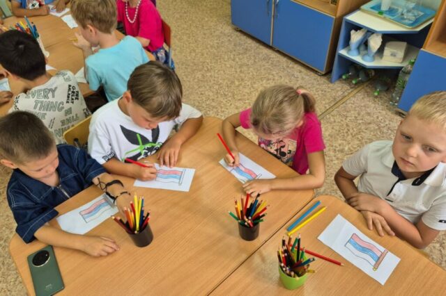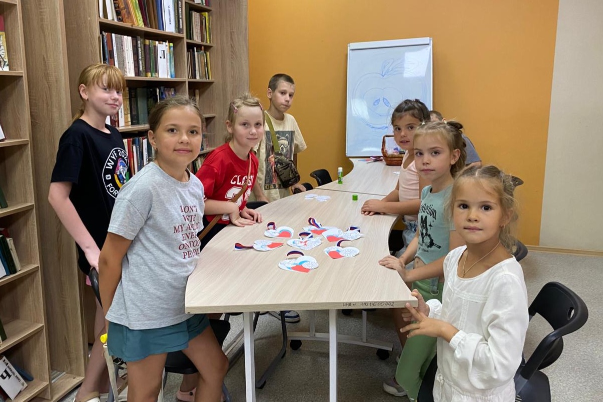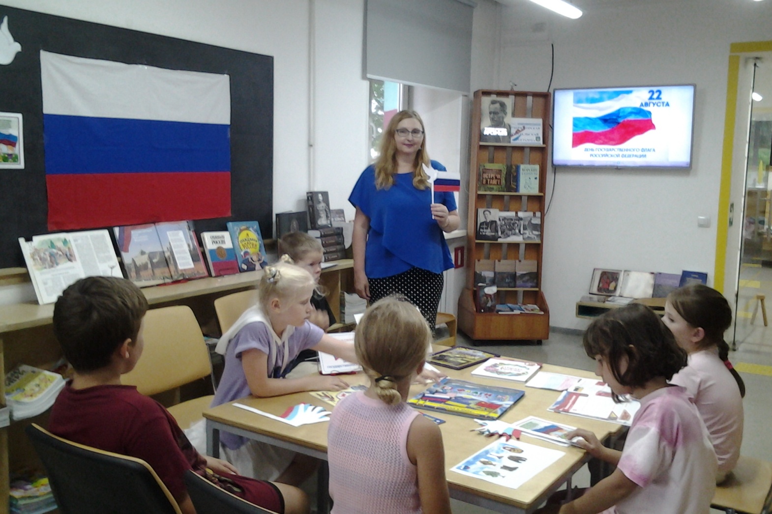 22 августа детская библиотека № 5 (ул. Леонова, 21) для детей группы летнего продлённого дня «Джем» организовала познавательную беседу «Символ единства-флаг России», с элементами творчества. Ребята посмотрели познавательный видеоролик об истории российского флага, вспомнили, по каким неофициальным символам Россию знают во всём мире (матрёшка, балалайка, медведь, берёзка, самовар, валенки), а в заключение сделали российский триколор своими руками.