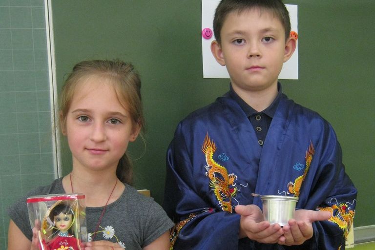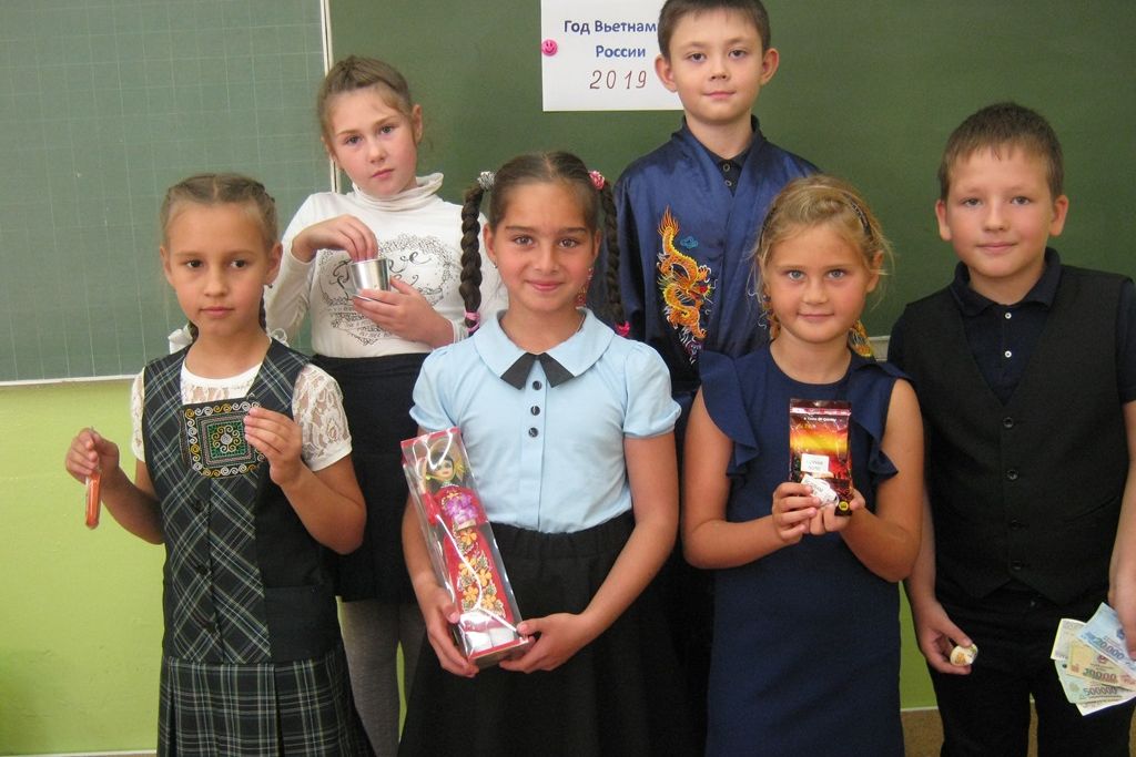 Дети и сами охотно делились своими воспоминаниями о теплом море, экзотических фруктах и вьетнамской кухне. К примеру, Касьянов Кирилл рассказал о вкусном рагу из змеи. Приказчикова Полина поделилась историей с поеданием фруктов, но оказалось, что это орехи. Традиционная кукла, как нельзя лучше продемонстрировала одежды женщин. Халат с драконом, еще раз напомнил о величии этого сказочного существа, так похожего на русского змея Горыныча.