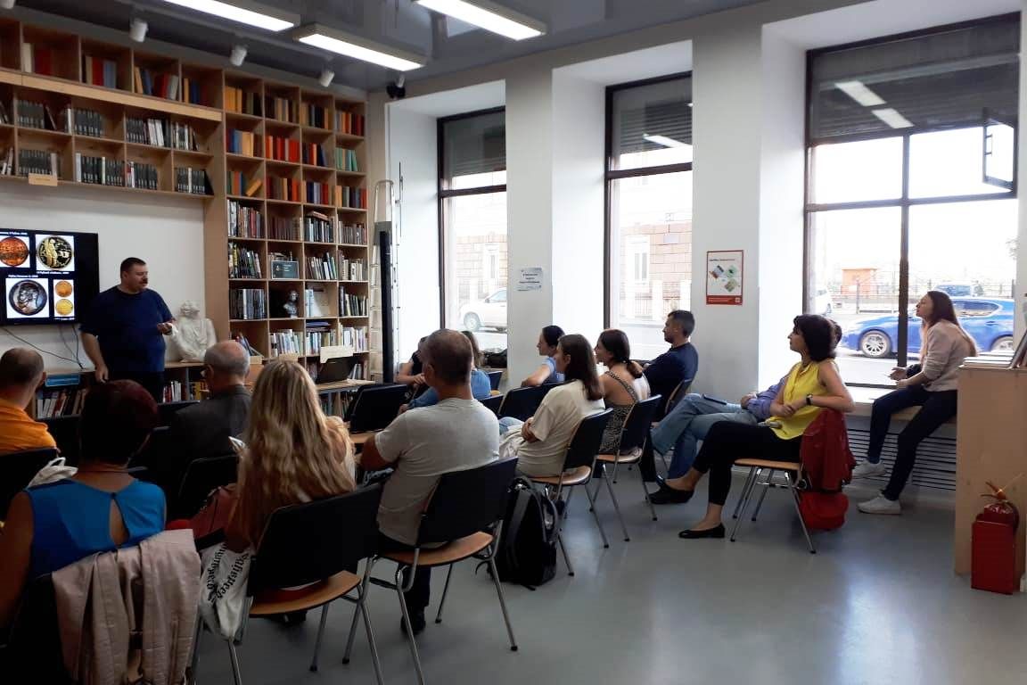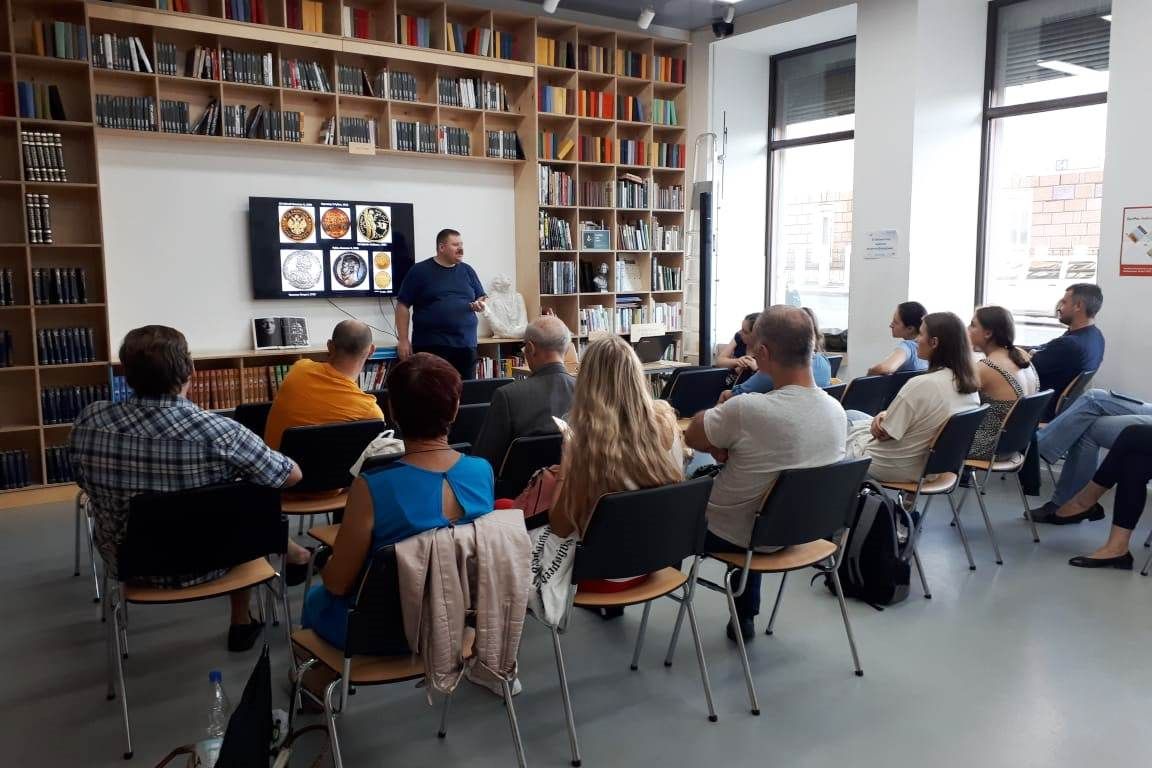 На встречу с гостями библиотеки пришел Владимир Павловский — психолог, путешественник, краевед и кандидат наук. А так же и увлечённый нумизмат с 6 лет. Он провёл прекрасную лекцию в ходе которой поделился с аудиторией чем именно его так привлекла нумизматика и как она помогла ему в жизни. Так как Владимир очень опытный лектор, аудитория была вовлечена буквально с первой минуты.